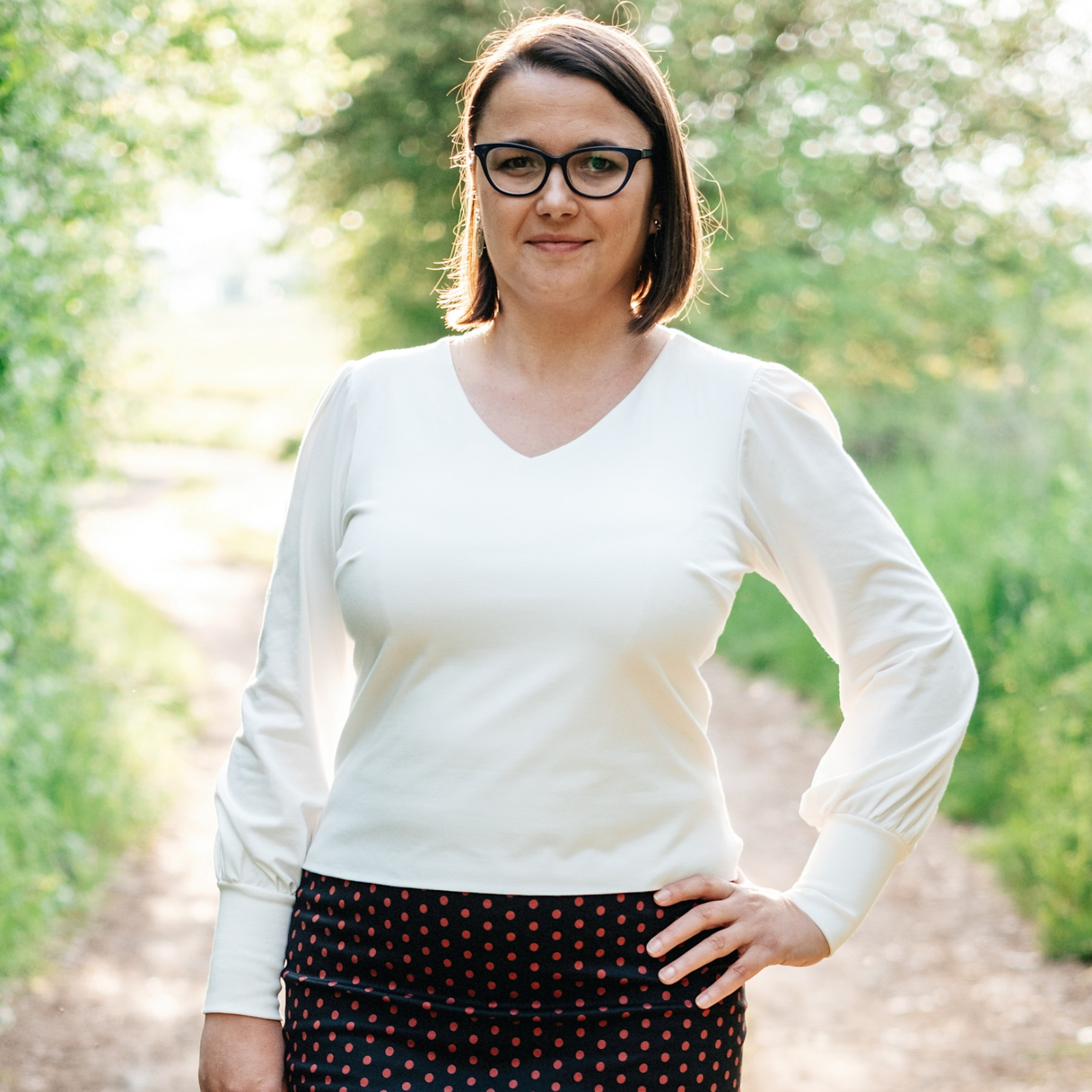 „Krásný top na běžné i sváteční nošení. Pěkně začištěný. Podle návodu se šilo moc dobře, jen jsem se potrápila u průkrčníku. Dělala jsem si pomocné šití, ale stejně vícekrát párala. Nakonec se mi to nejlépe povedlo, když jsem si to nastehovala ručně. Šila jsem postupně ve volných chvílích. A konečně došila. Děkuji“