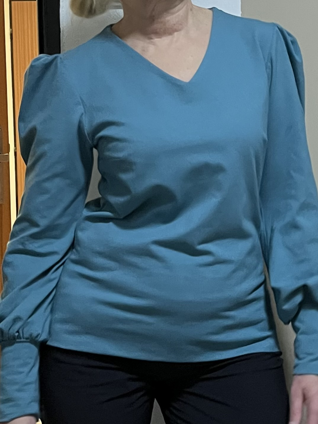 „Nesmírně elegantní tričko/halenka. Opravdu top. Šila se naprosto suprově. Jen jsou mi dlouhé rukávy(moje chyba, zapomněla jsem je při konfiguraci zkrátit), takže přemýšlím co s nima.“