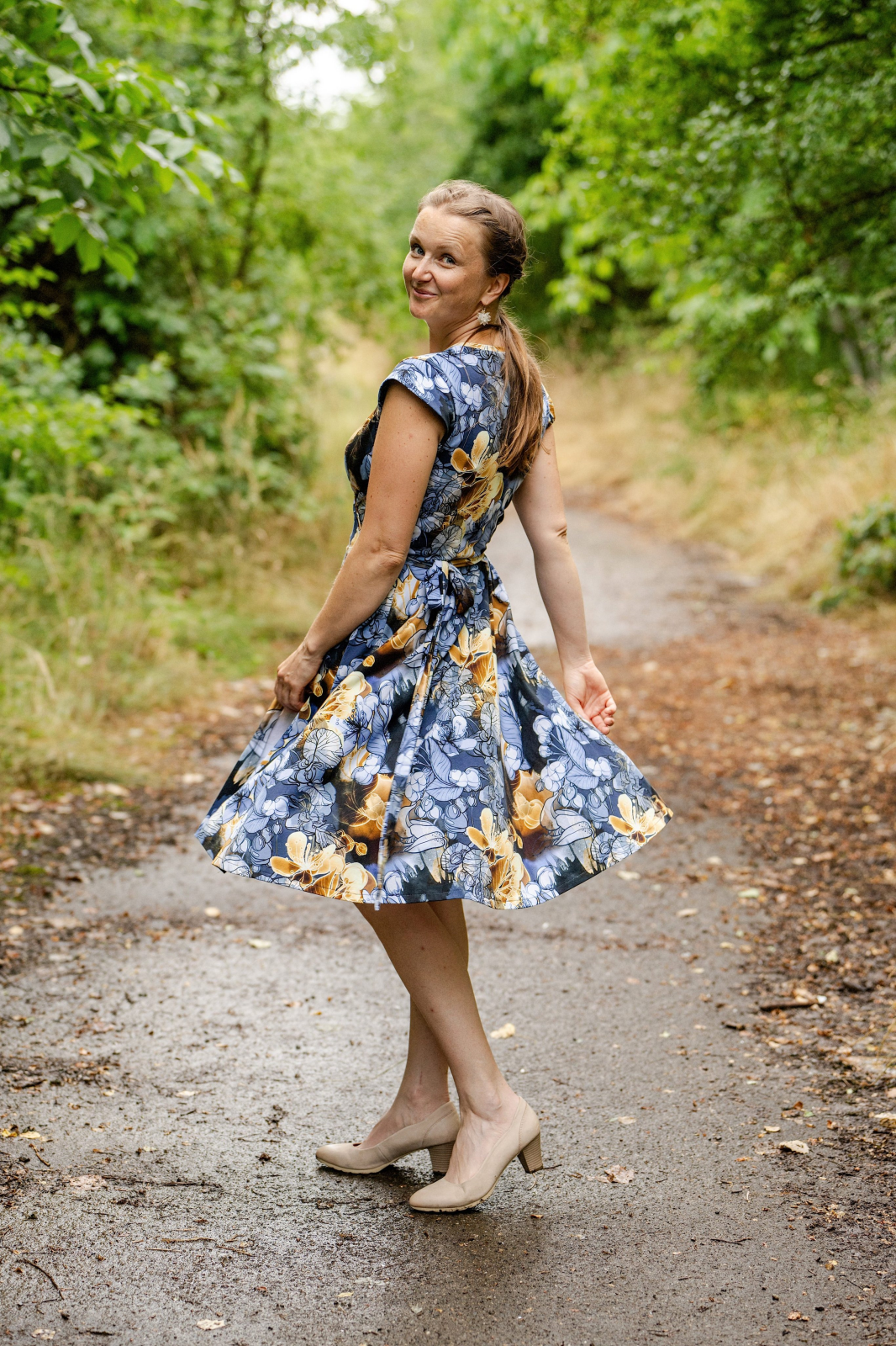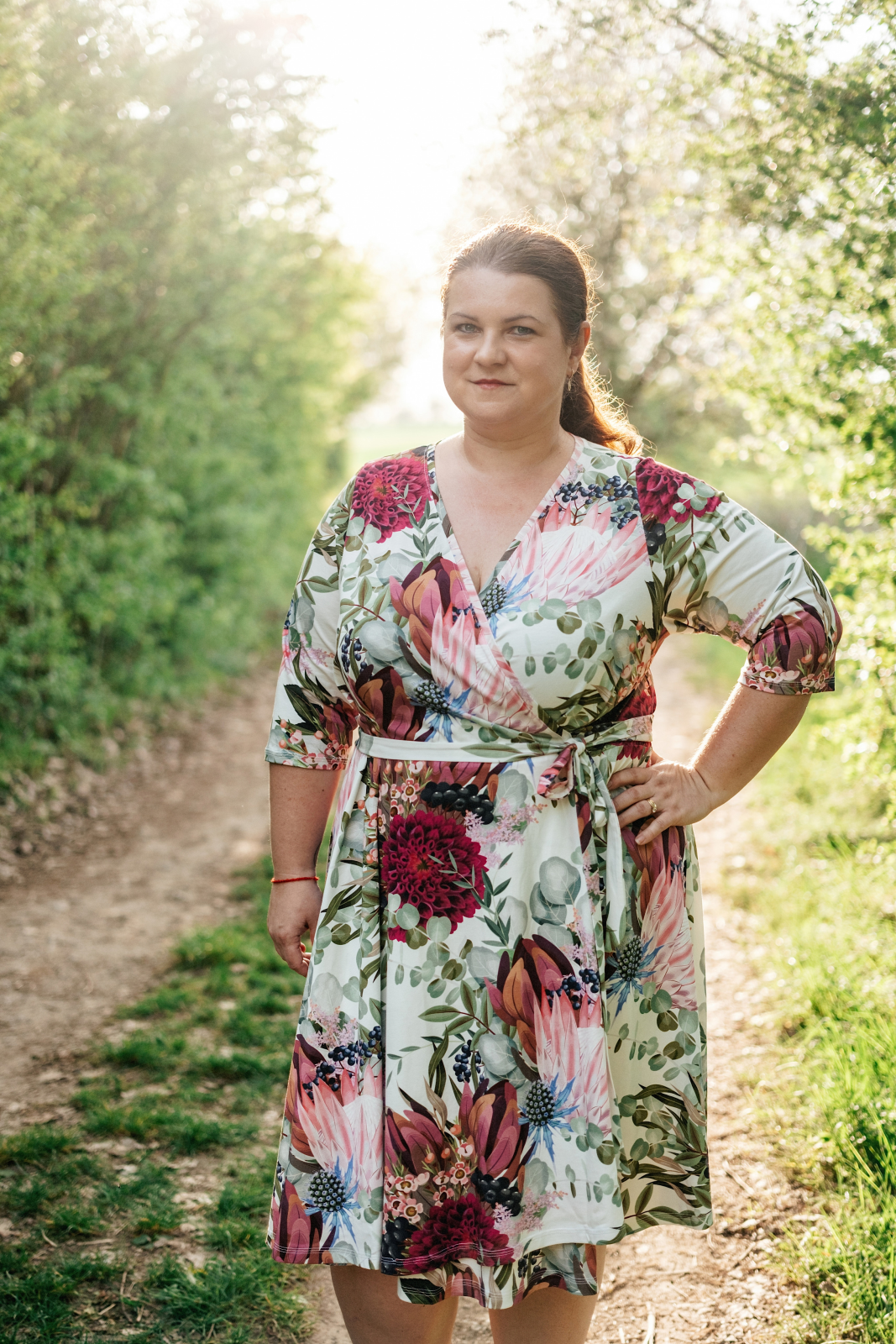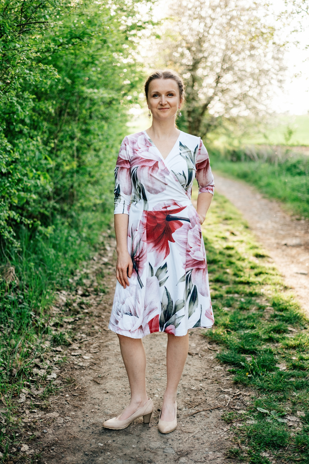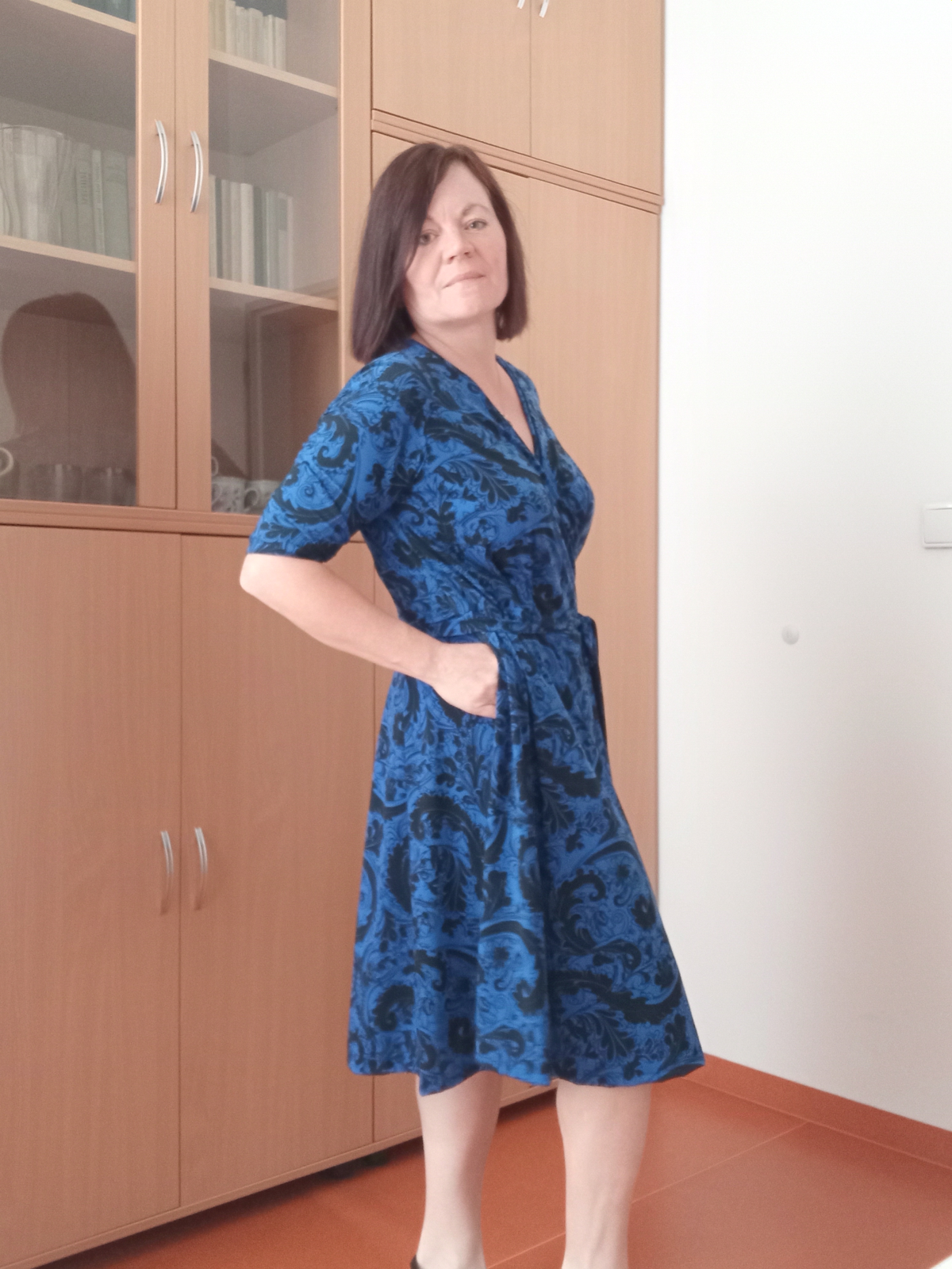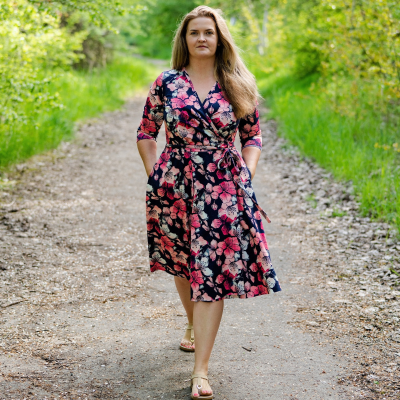 „Na zavinovací šaty jsem se dlouho chystala, ale měla jsem strach, že je nezvládnu ušít. Když holky ze Živých střihů vytvořily nový střih, byla jsem nadšená a věděla, že se do nich konečně pustím. A ještě je budu mít přesně na svou postavu. Zvolila jsem levnější funkční úplet. Šila jsem dle videonávodu krůček po krůčku a poctivě zažehlovala. Šilo se mi dobře a mám z nich velkou radost a moc ráda je nosím. Moc děkuji za vaši práci.“