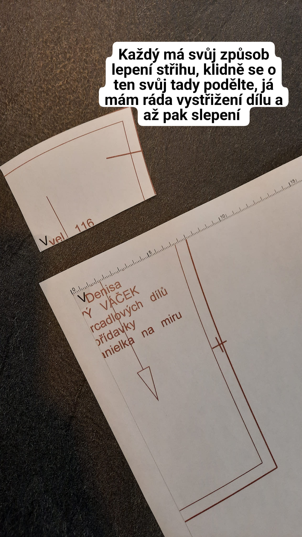 Při tisku můžete zvolit tisk se švovou záložkou a díly vedle sebe. Každý díl máte tak přímo jako šablonu nachystanou pro stříhaní a díky tomu, že má každý díl svou barvu, se vše dobře lepí.