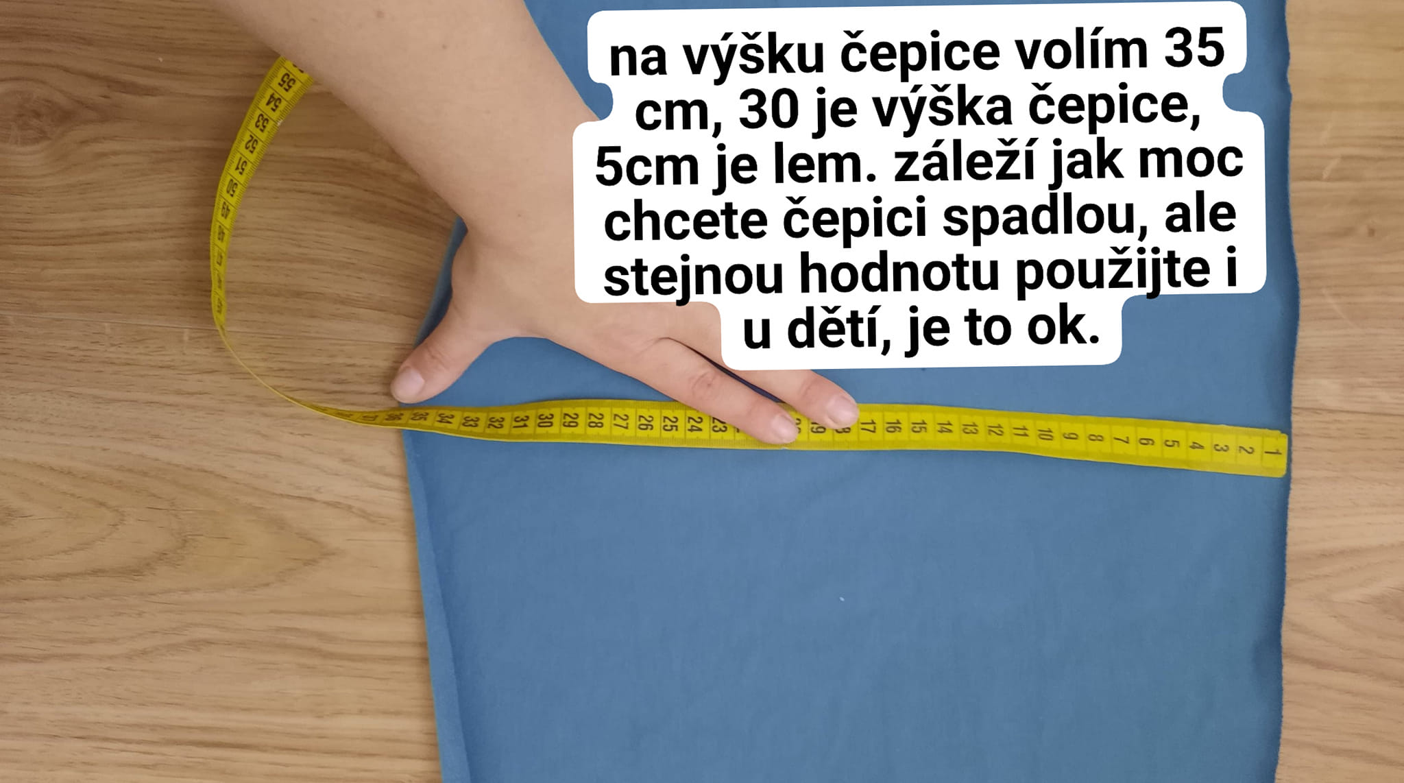Na výšku čepice volím 35 cm, konečná výška bude 30 cm, 5 cm je lem.
