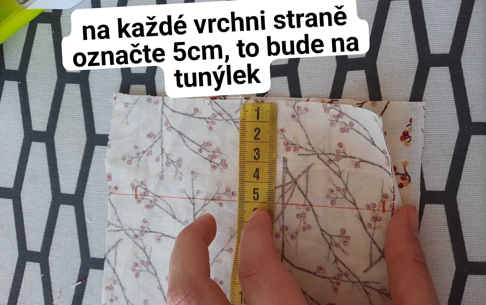 Na každé vrchní straně označte na tunýlek 5 cm z rubu .