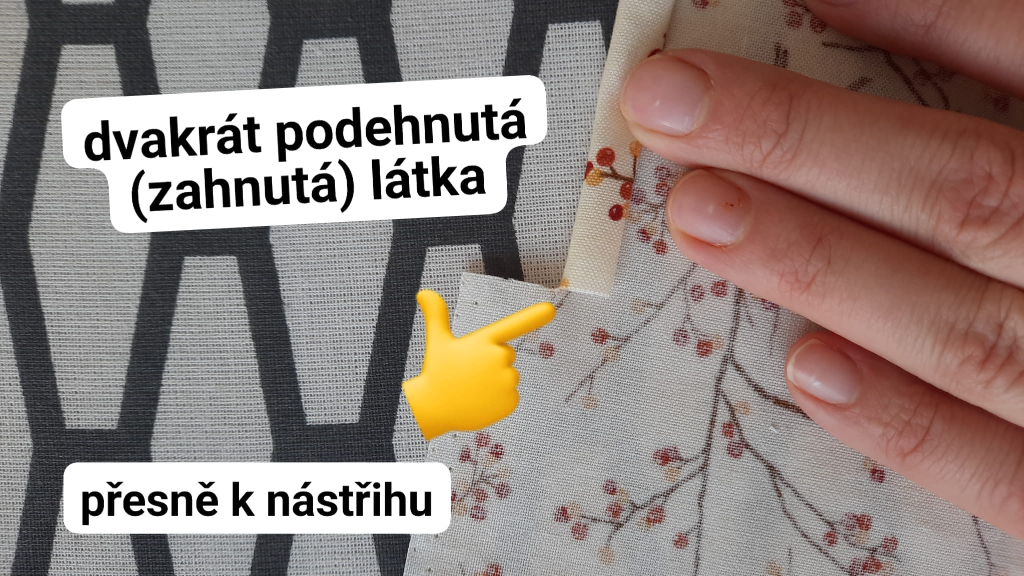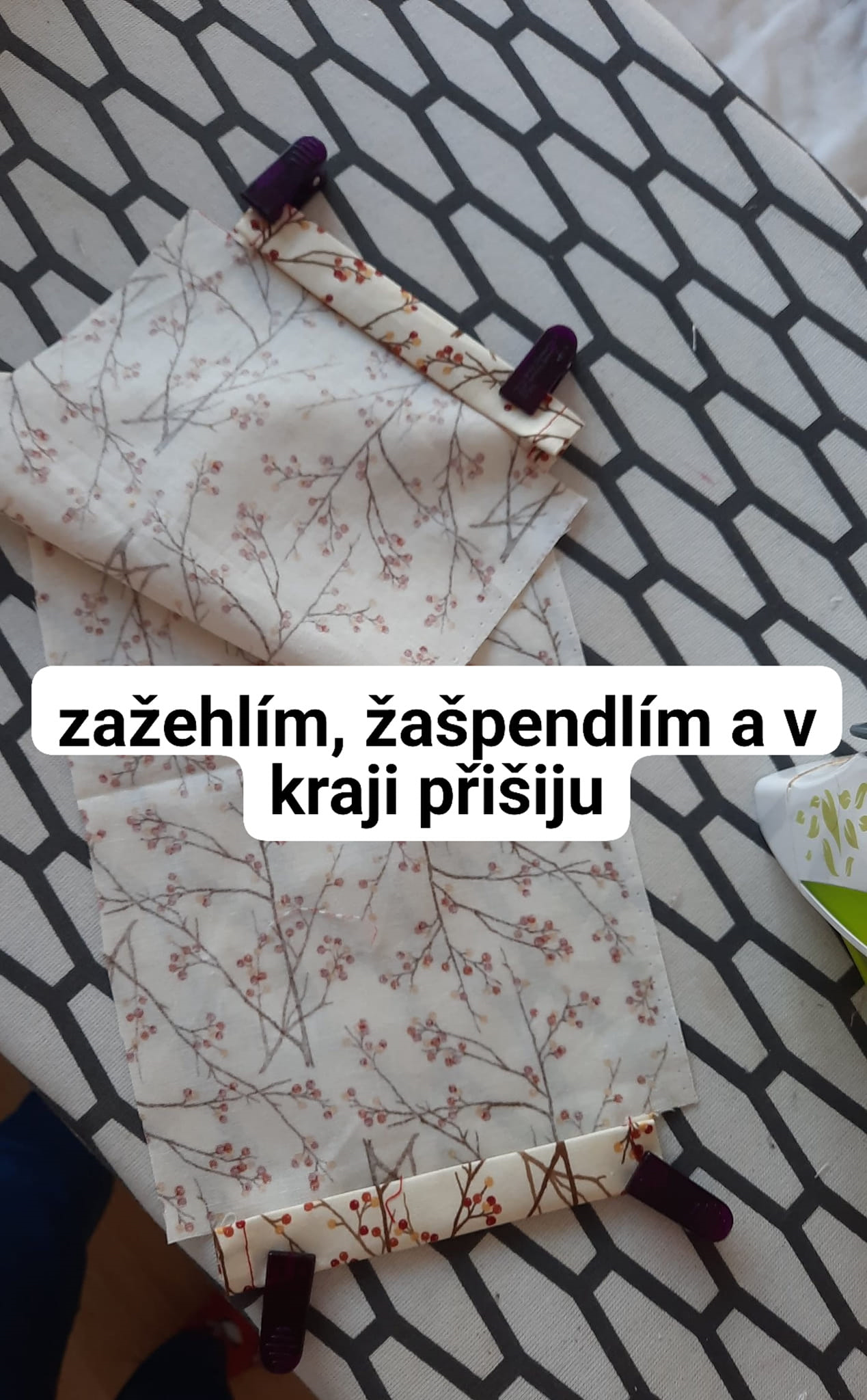 Zažehlím, zajistím kolíčky nebo špendlíky a v kraji se zapošitím přišiji.