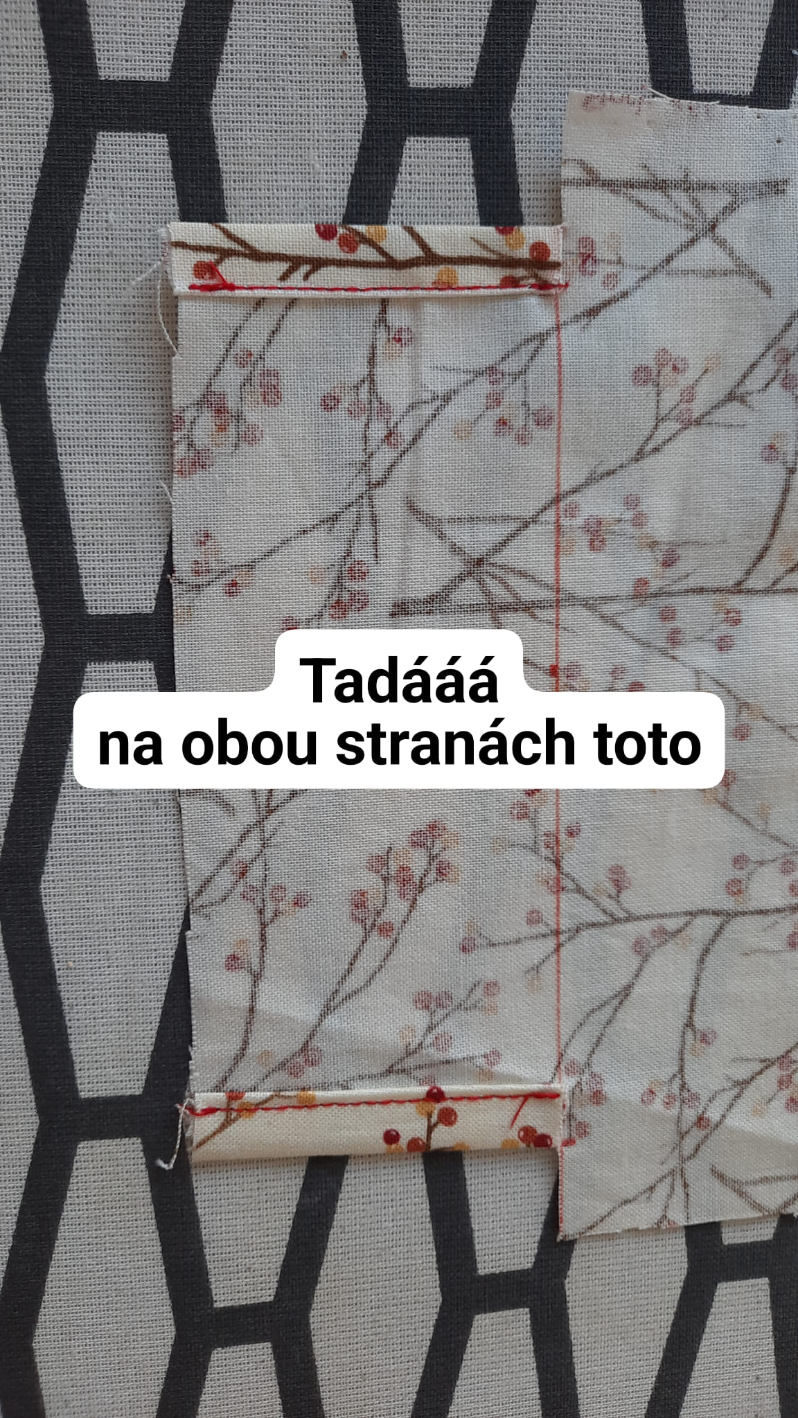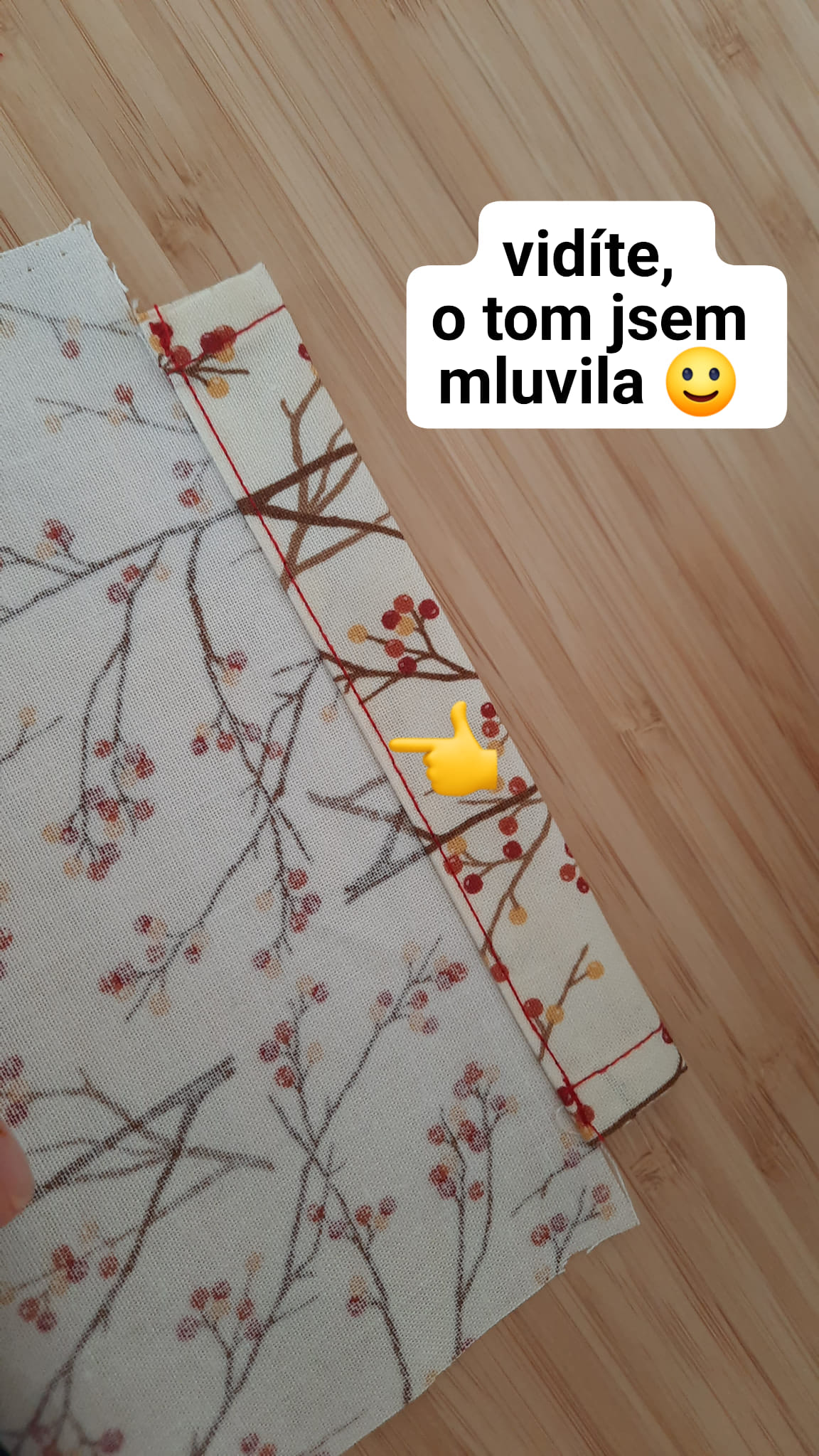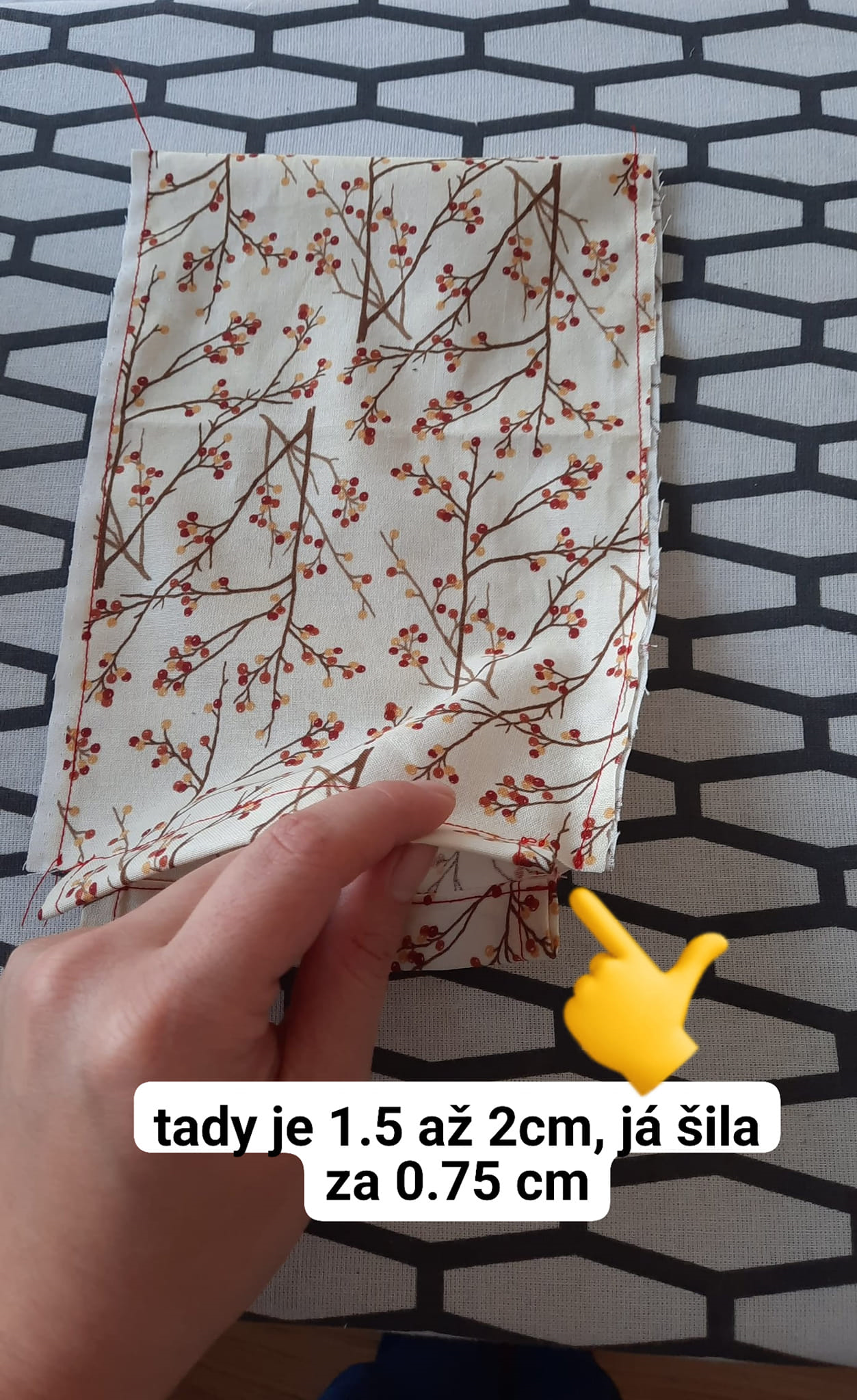 Z boku, kde mám na švovou záložku necháno 1.5 až 2 cm jsem tedy ušila šev za 0,75cm.