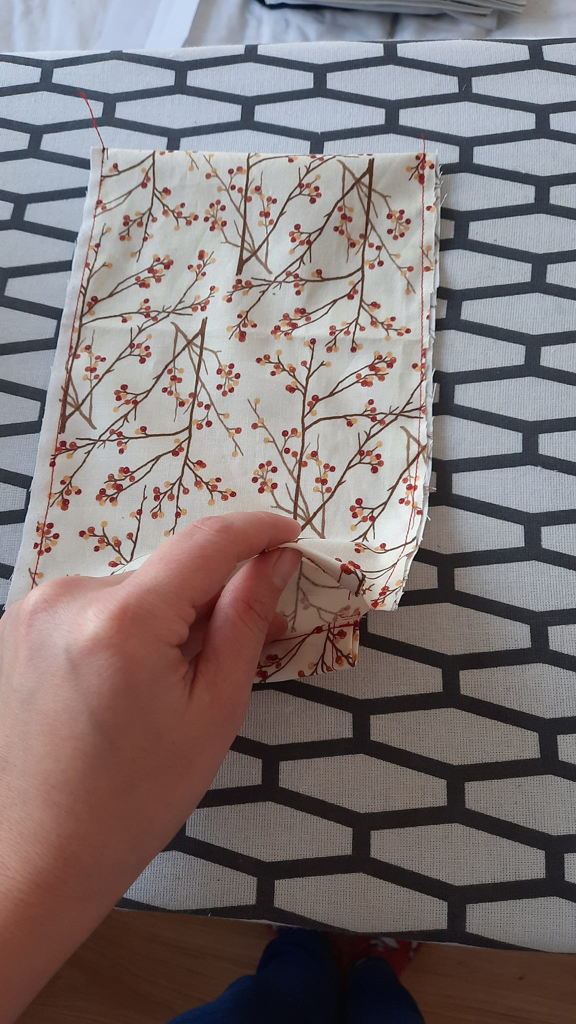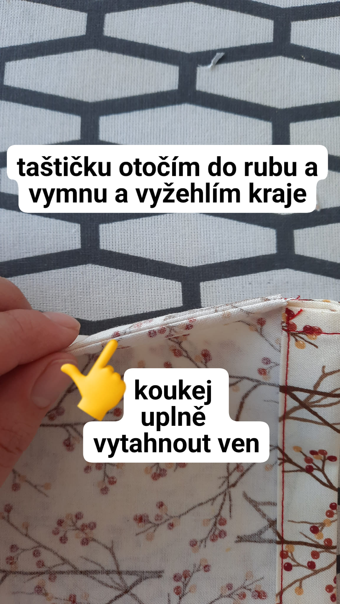 Sáček otočím do rubu a kraj úplně vymnu a vyžehlím do rovna.