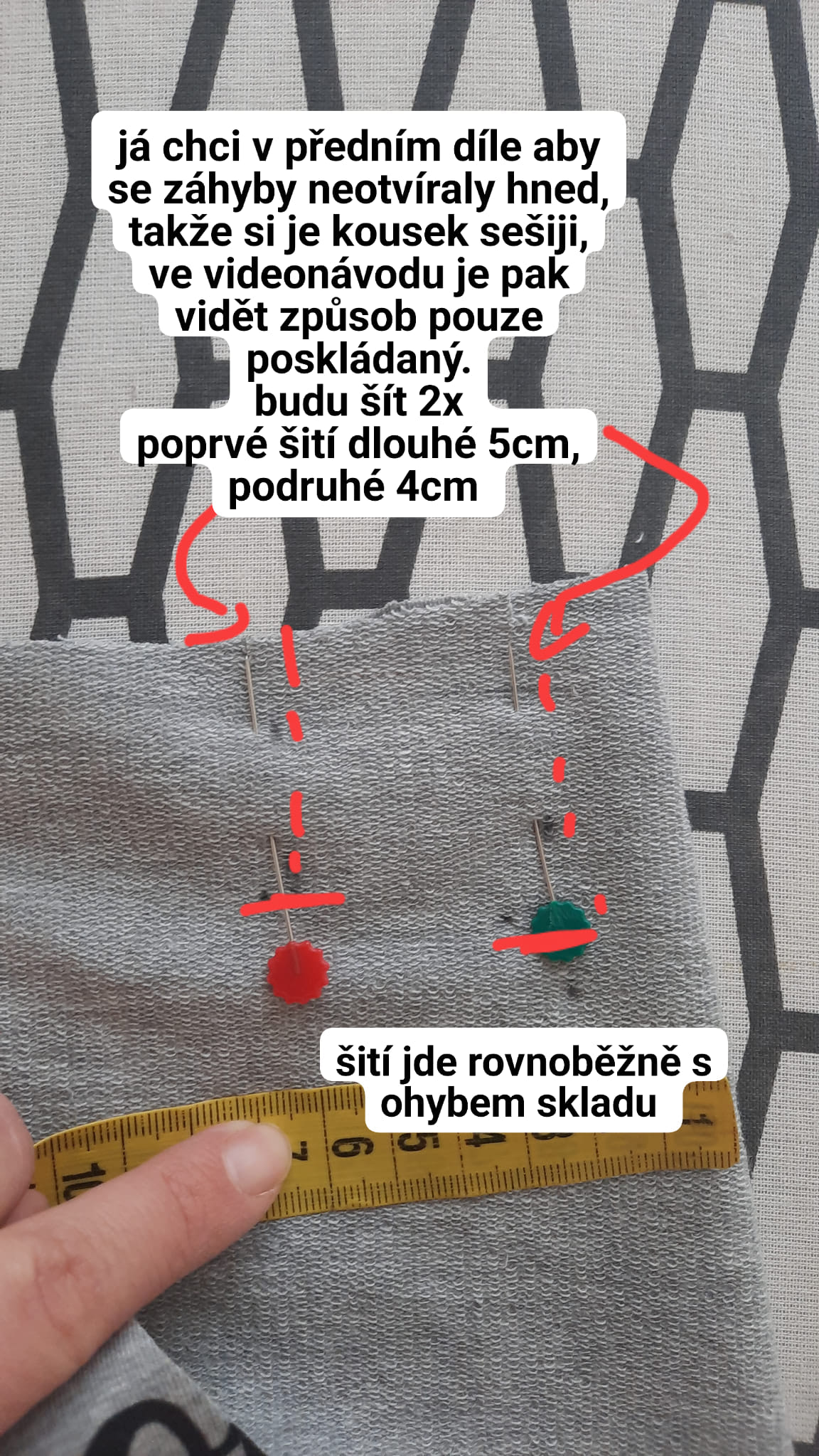 Tady si šila šaty i Týnka - najdete tady trochu jiné šití skladů, prošije si je trochu dál a tím pádem se otevírají postupně. To se dá použít, pokud se Vám nelíbí, když se vám rozevírají moc brzo.