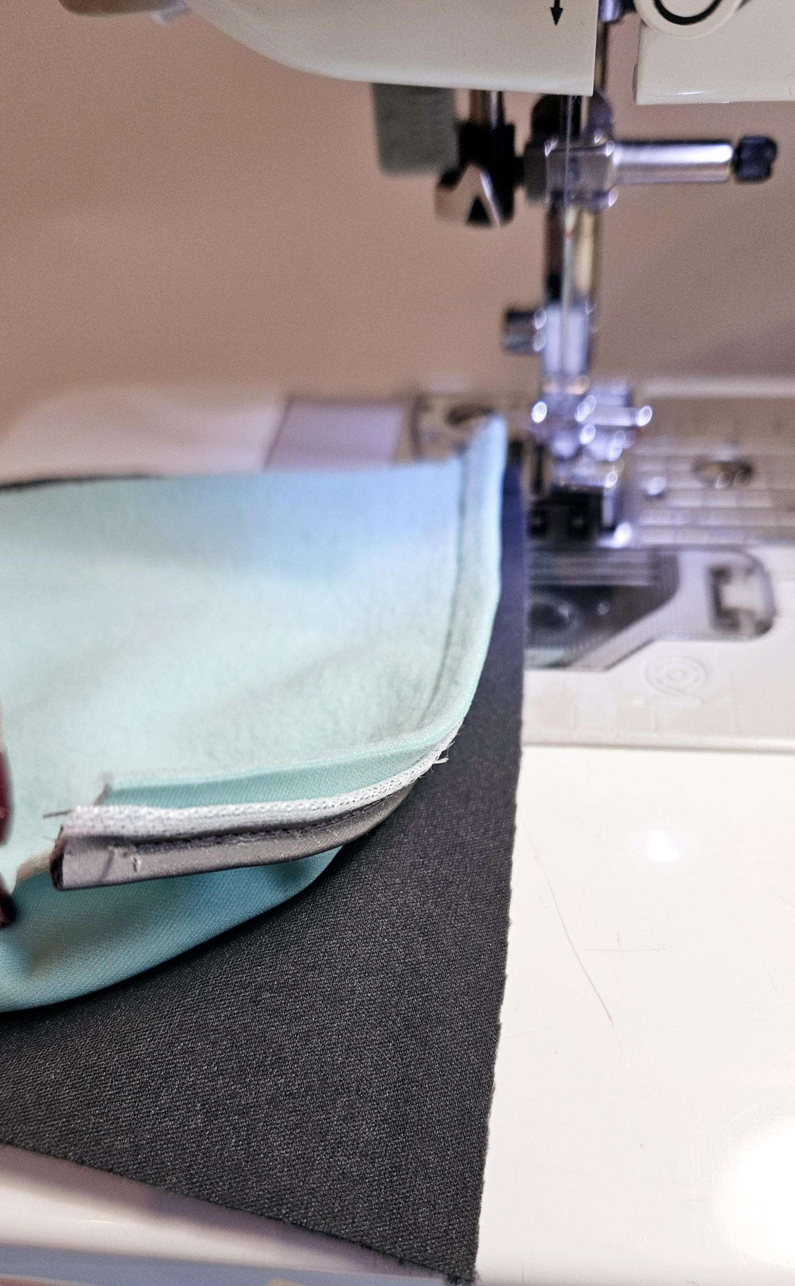 Šiji přesně po minulém šití. nebo o 1mm blíže k paspulce. Tak budu mít jistotu, že bude vidět pouze toto šití a nikoli předchozí zajišťovací šití.