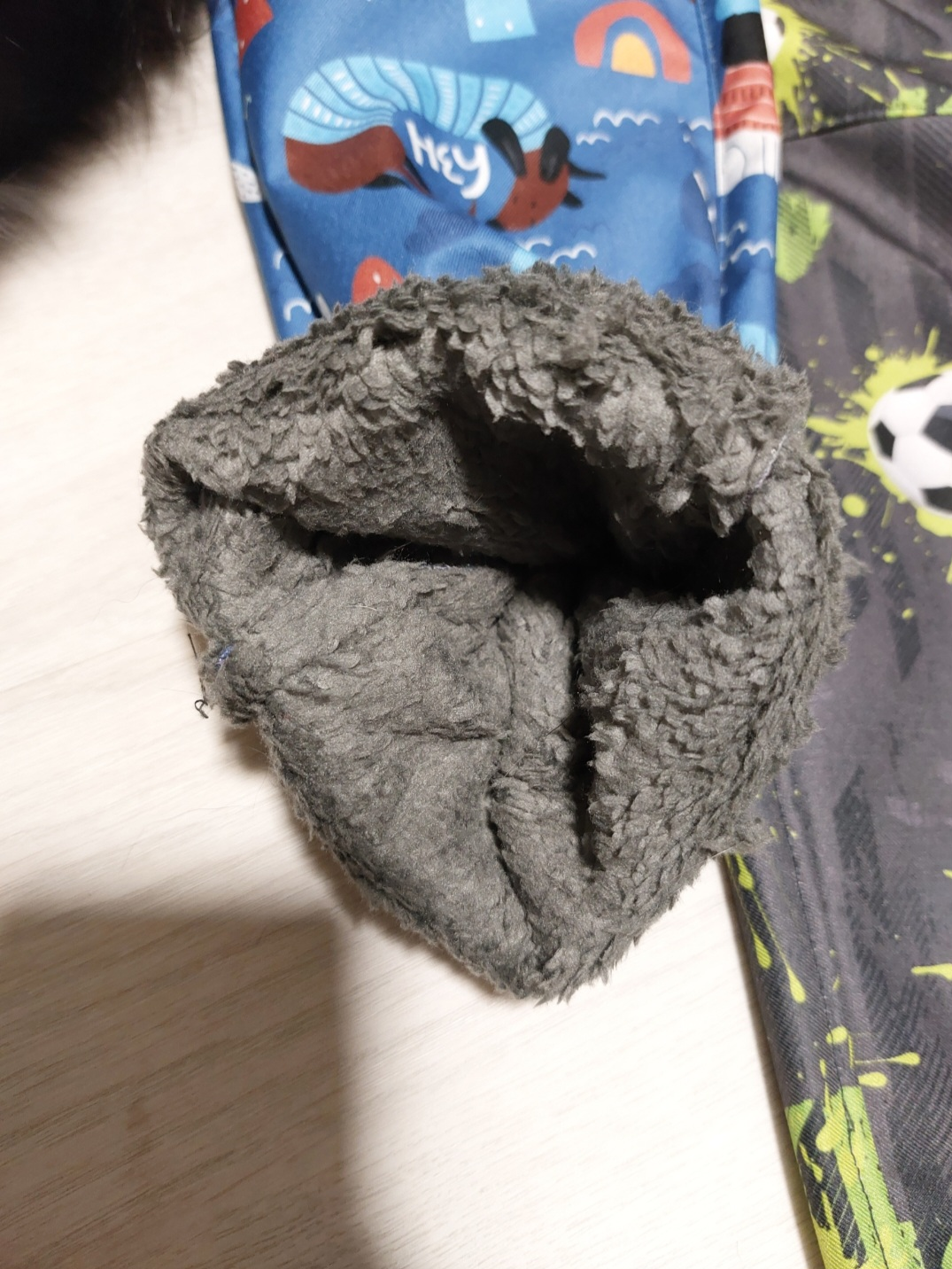 A výsledek? Návleky perfektně (natěsno) sedí na zateplené holiny Demar 24/25 a 100 cm dítěti jsou po kolena. Vůbec nevadí, že je to větší velikost.