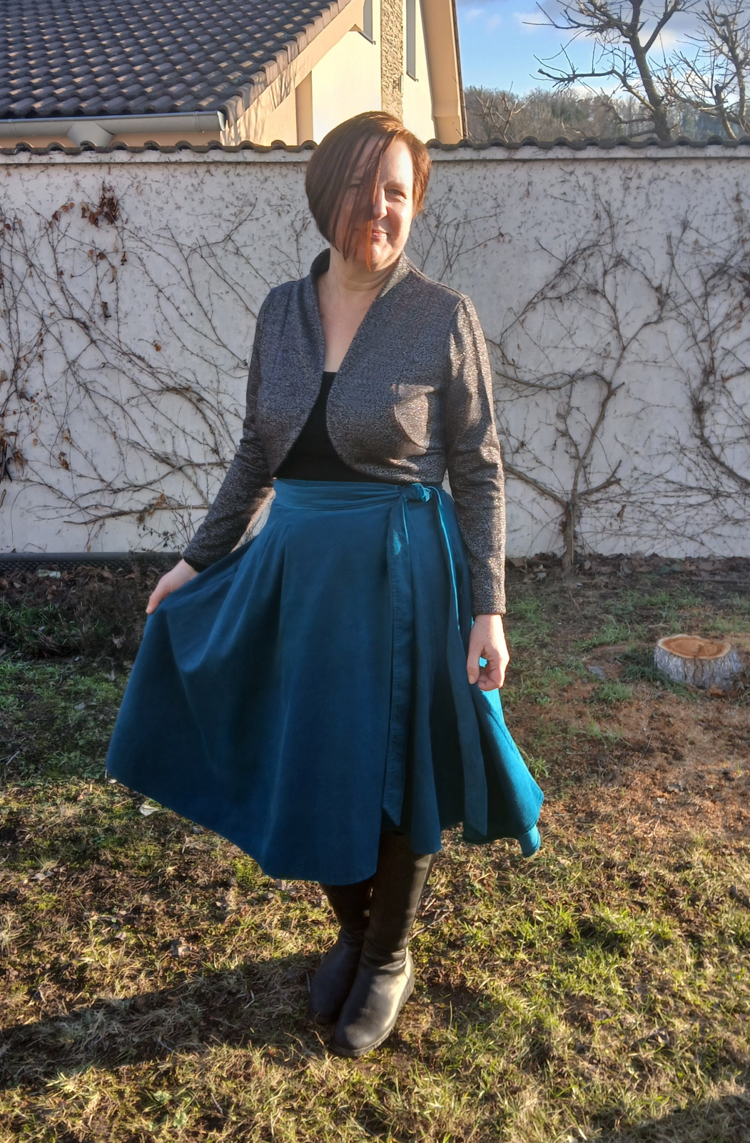 „Je to už má druhá (a asi ne poslední) sukně podle střihu na Leontýny a jsem nadšená. Hezky se k ní hodí i vaše nové bolerko Siva.“