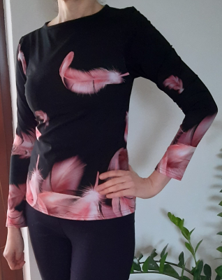 JJ: „Šilo se hezky, originál vel. 38 mi přišlo široké, proto jsem si ho nastavila podle mého oblíbeného trička.“
