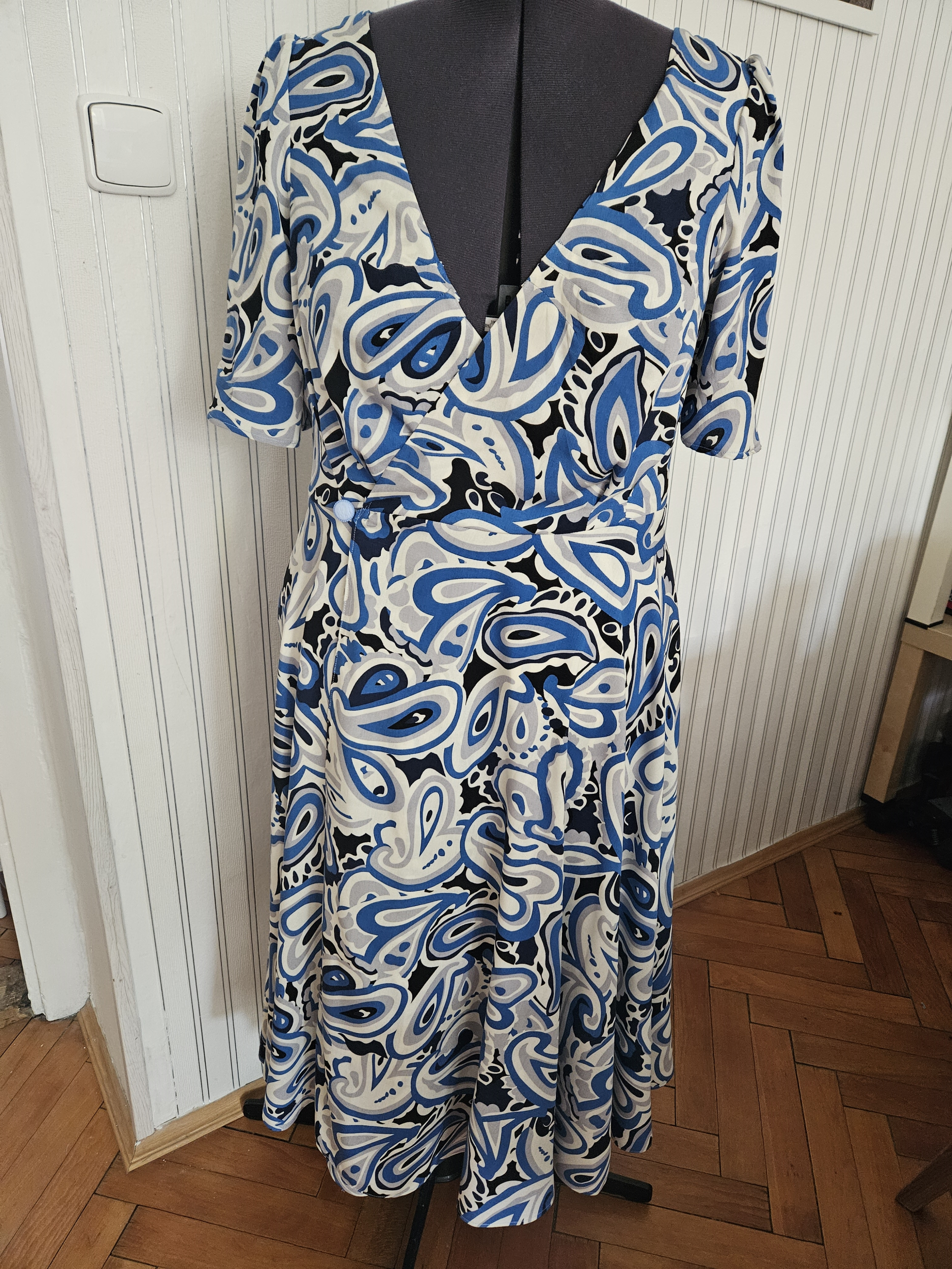 „Vynikajúci strih aj video. Som úplný začiatočník, ušila som zatiaľ dve obliečky na vankúš, jedny super jednoduché nohavice z Burdy a potom rovno tieto šaty. Ani nemám overlock, takže ma trochu vytrápila elasticita látky... Ale napriek tomu sú nositeľné, sedia výborne. Deň mi trvalo ich nastrihať a ďalší deň ušiť, s viac skúsenosťami a lepším strojom by to bolo isto oveľa rýchlejšie 😃 Určite nie sú moje posledné.“