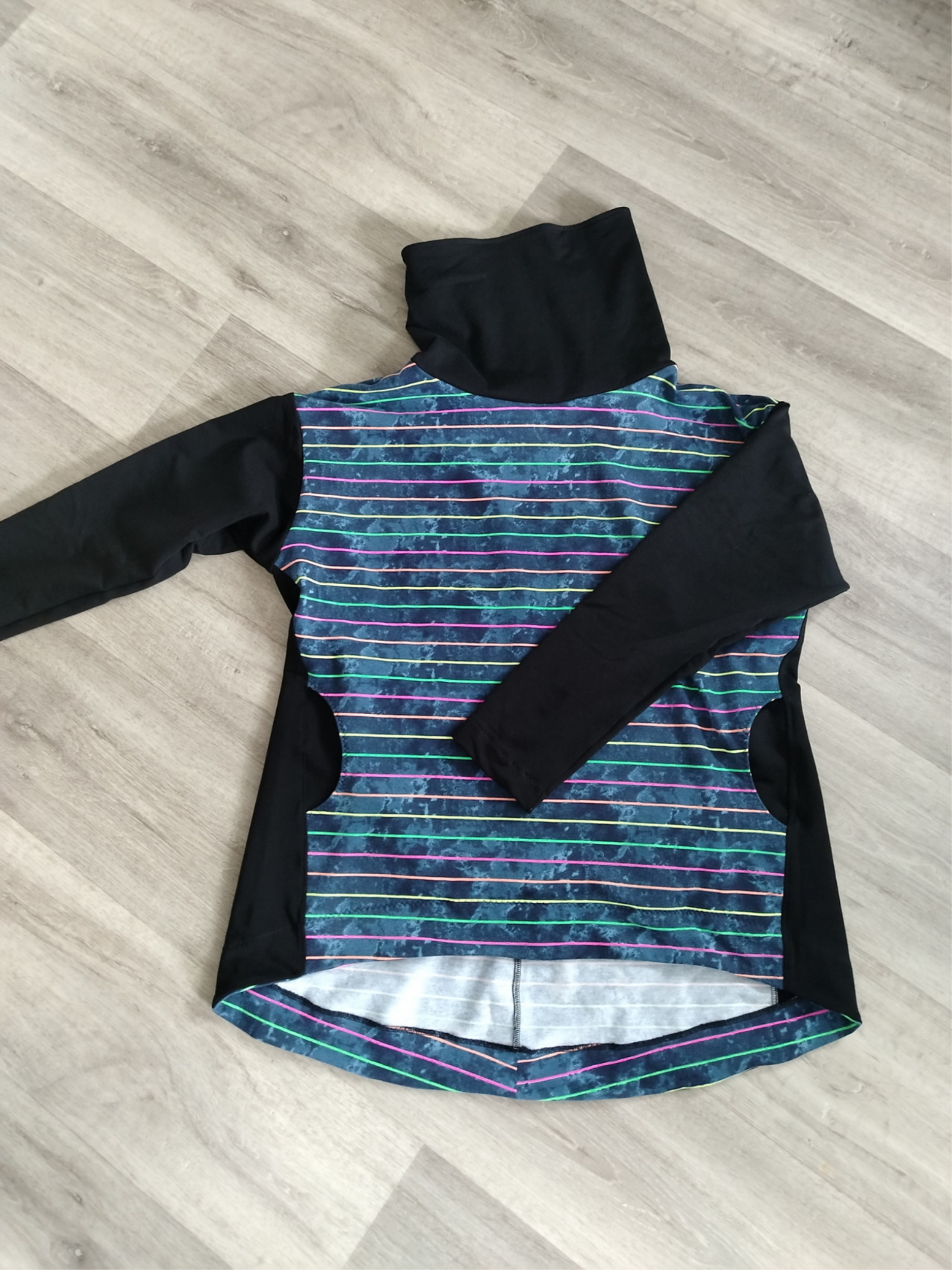 „Šilo se moc dobře, naučila jsem se nové techniky z videa, ale trochu mě zklamalo, že mikina je opravdu široká, i když jsem se v konfiguraci snažila o co nejužší verzi. Musela jsem si skoro ušitou mikinu zúžit ve švu na zádech, což nedopadlo zrovna ideálně 😉. Jinak jsem moc spokojená, je opravdu pohodlná.“