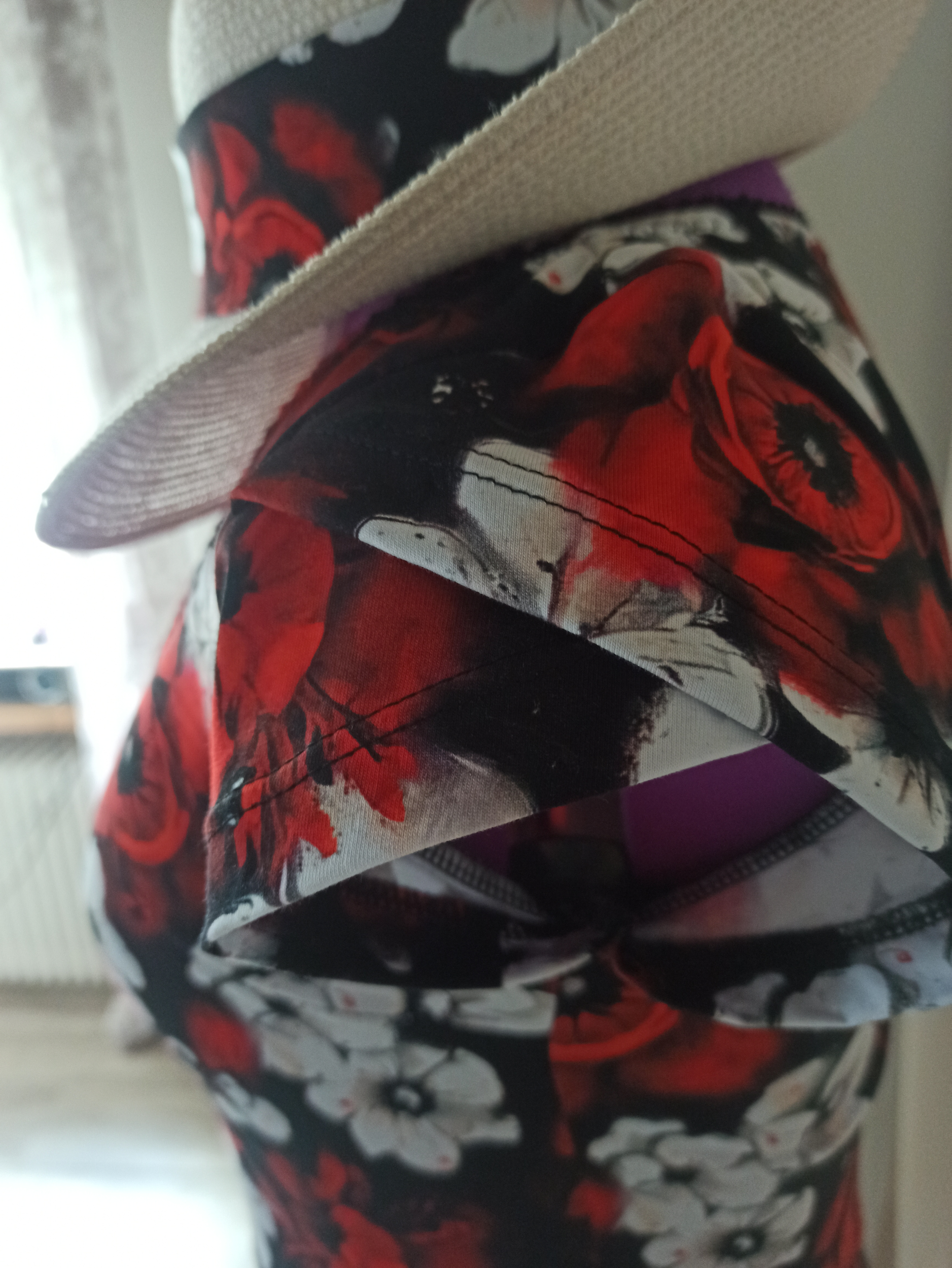 „Šilo se nakonec s pomocí ohledně přídavků moc hezky a rychle, dokonce i vršek mi vyšel hezky😊 Jen měla být původně pro starší dceru s obvodem hlavy 54, sice jí obleče, ale trochu tlačí, tak ušiju trošku větší a tahle nakonec hezky sedí mladší dceři s obvodem 49 cm (a to mám opravdu přídavky odšité správně😁). Ale sedí mladší krásně a je z ní nadšená😊“