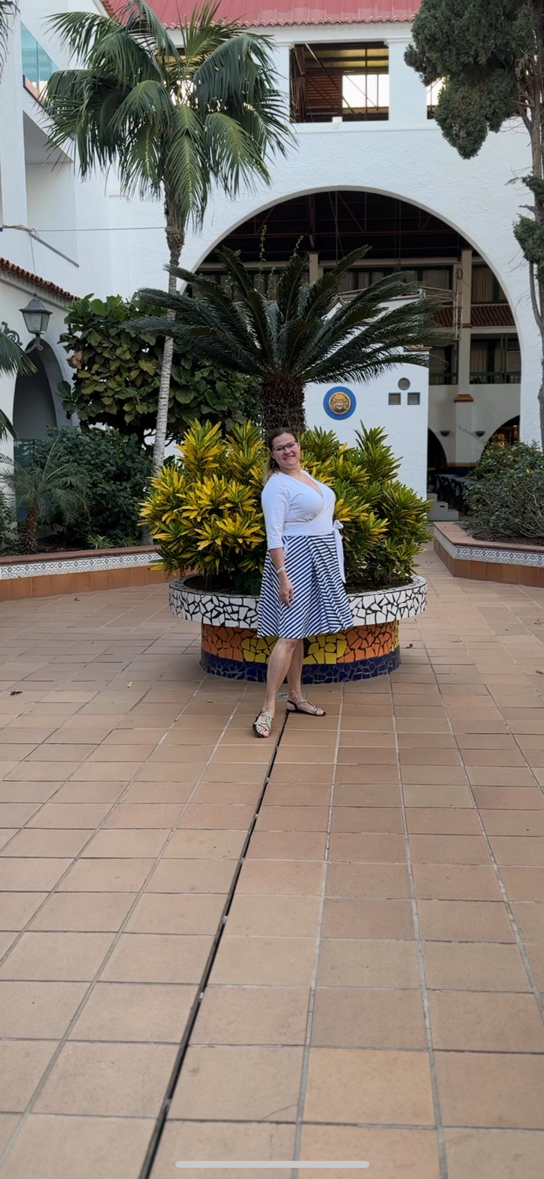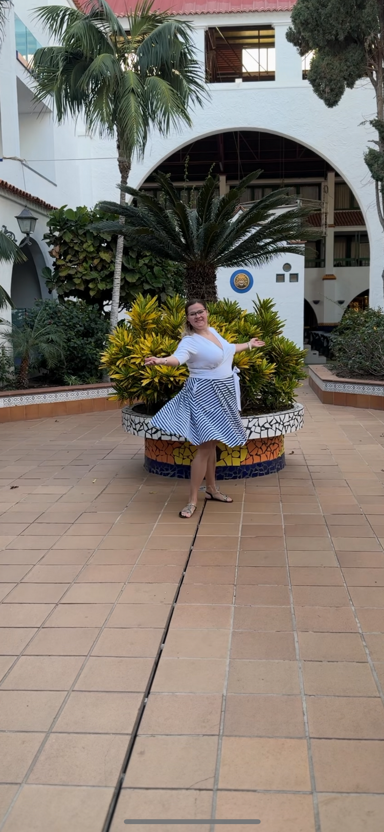 V tomhle případě mám zvlášť sukni a zvlášť triko, ale dohromady to vypadá jako šaty. Nejlepší jsou na tom ty kapsy. Pořád bych měla ruce v kapsách. 😁“