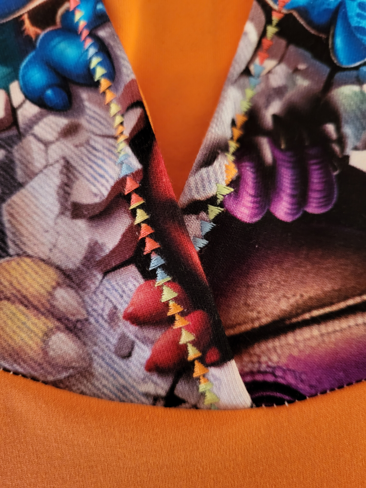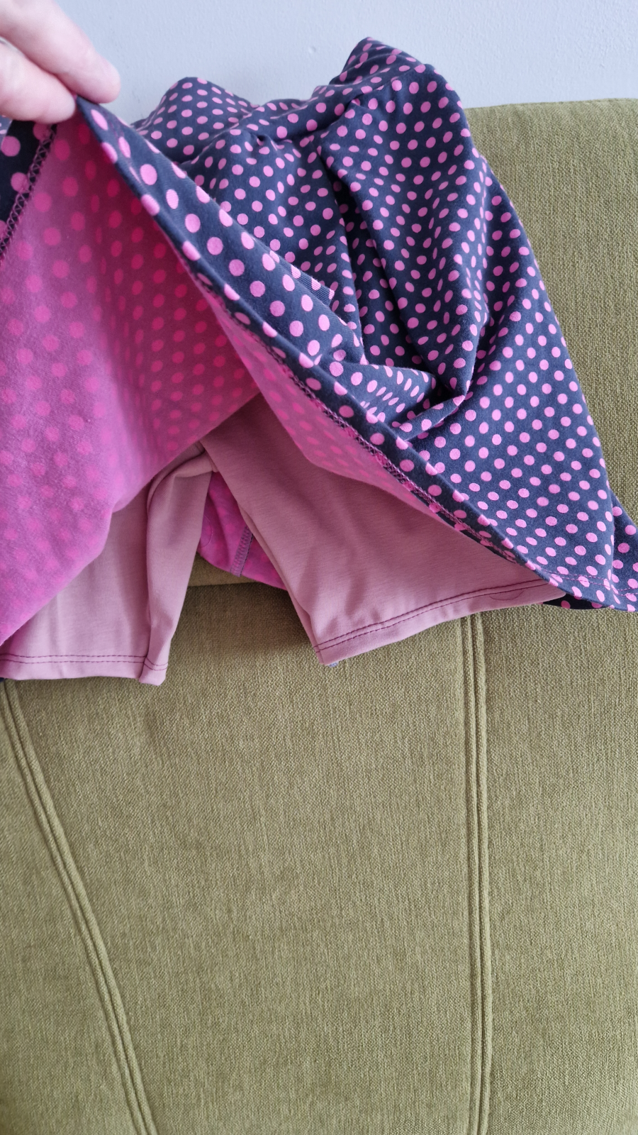 „Z úletu super ,u popelínu mne potrápilo začišťování pasové linie -popelín se trochu vytřepil a neseděl mi pak pas -musela jsem vypárat a ušít nový .Úplet je pružný ,a ten mi kupodivu sedl přesně .Okraj sukní rolovacím stehem na overlocku -nastaveno u Brotheru vše na R -jak jsem se toho bála ,tak je to super práce :)“