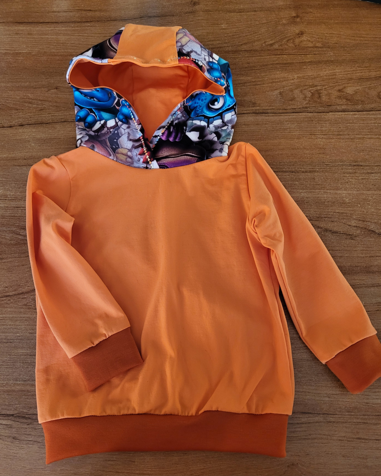 „První zkušební kousek ze zbytků, šilo se fajnově, syn není moc konfekční, takže jsem nadšená z možnosti různých konfigurací 😍“