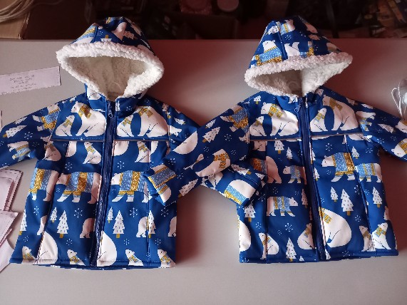 „Veľká spokojnosť s nastavením strihu a super videonávod. Šila som pomaly a veľa premýšľala, nakoľko som šila prvý krát bundy a nohavice zo softschellu a ešte som si to zťažila že bol s barančekom, to tu ešte nebolo. Boli potrebné úpravy hlavne na vačkoch a podsádke bundy, musela som zostrihať na jednej strane barančeka kvôli hrúbke. Vačky na nohaviciach som nerobila. Pridala som aj skryté náplety na rukávy aj nohavice a reflexnú paspulku. Napodiv moja obyčajná Veritaska hrúbku šitia perfektne zvládla. Vnúčatá - dvojčatá súpravy vynosili celú zimu. Určite budem šiť nové. " *“