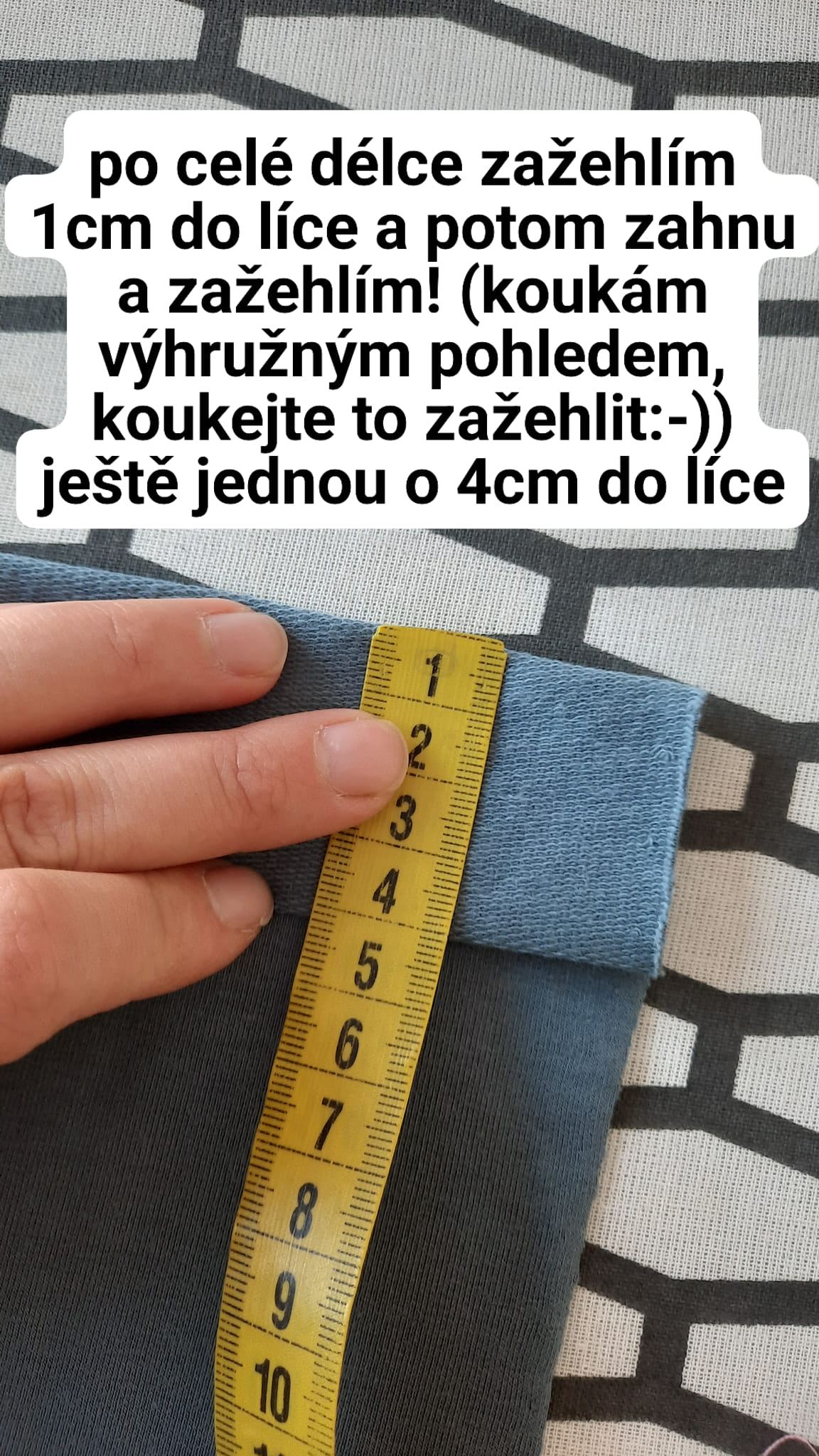 nejprve po celé délce ohnu a zažehlím 1 cm a ještě jednou ohnu a zažehlím 4 cm.