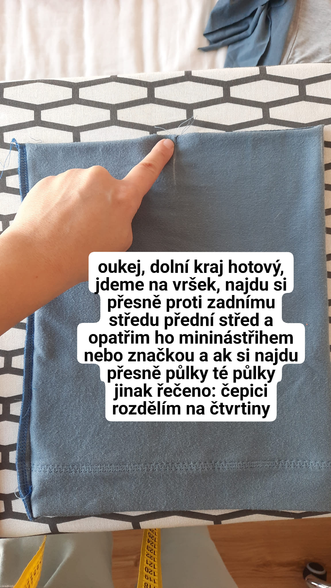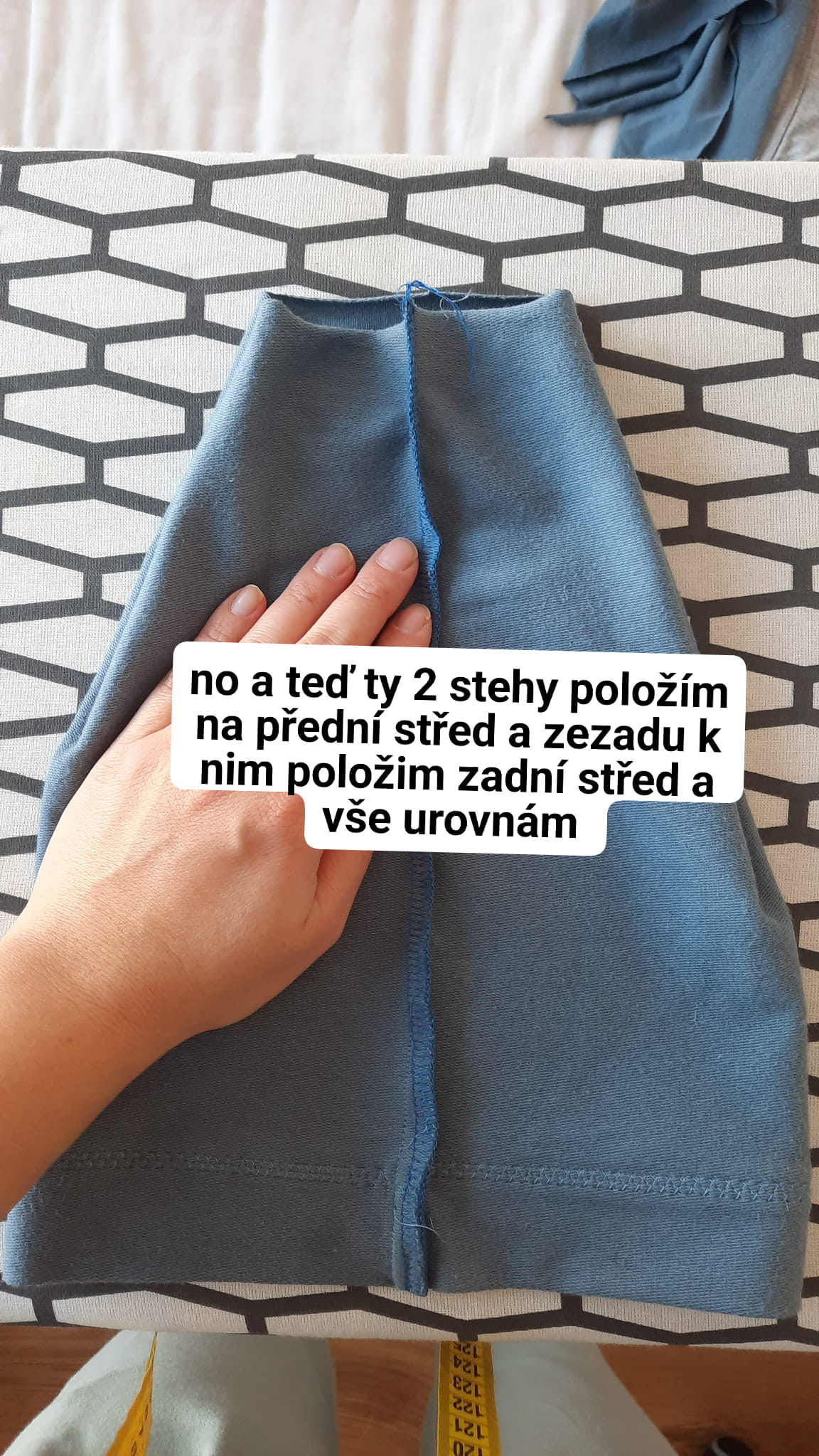 k odšitému místu - 2 stehům si položím z jedné strany přední střed a z druhé zadní střed.