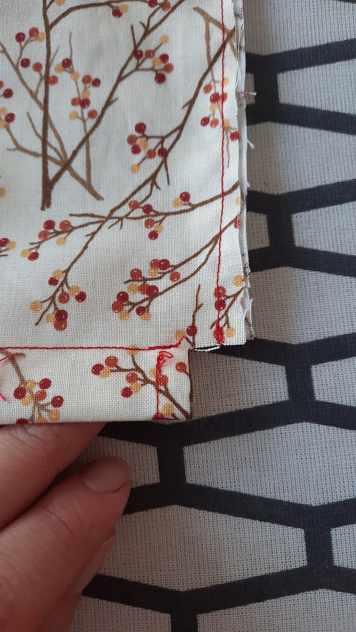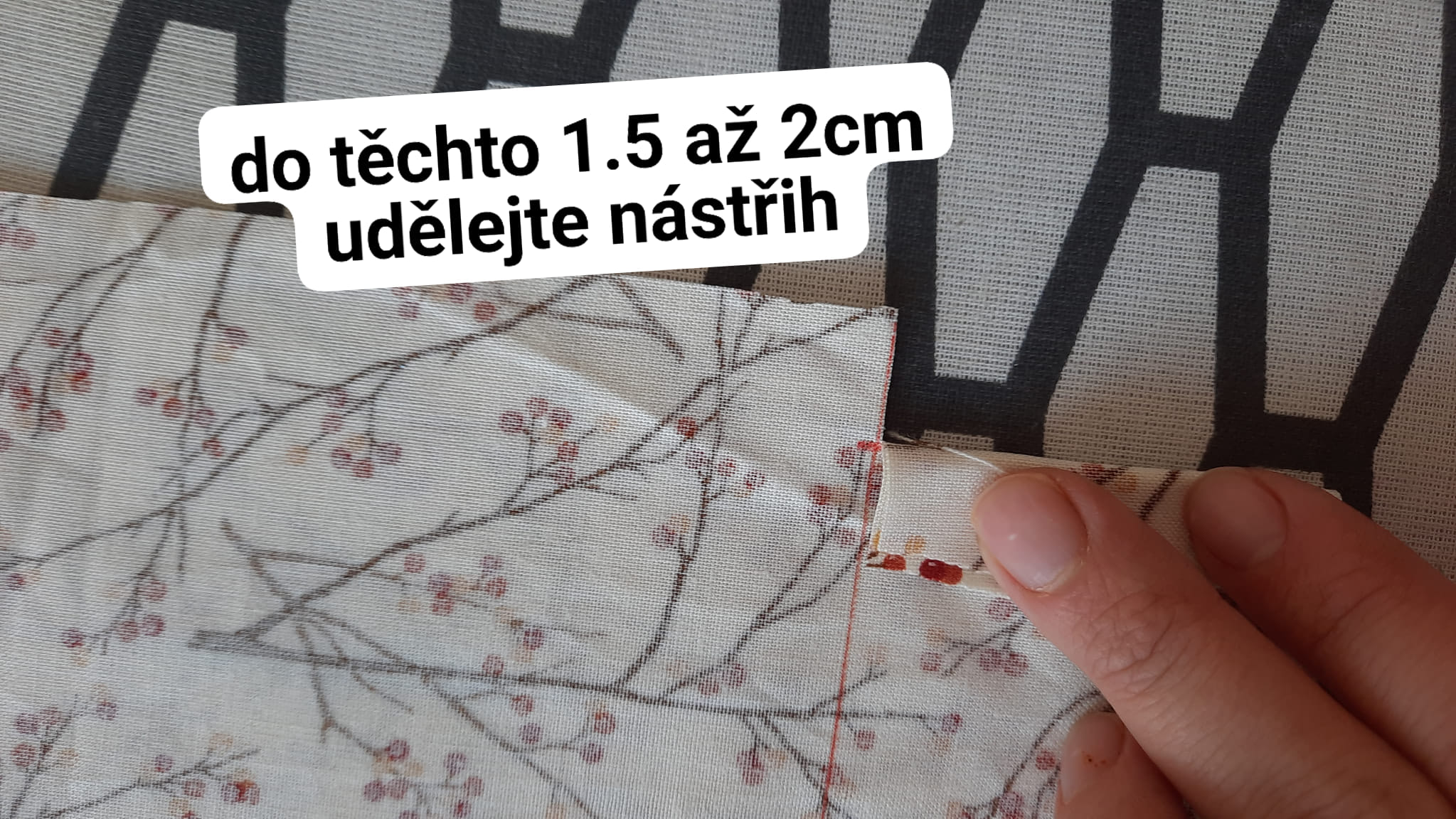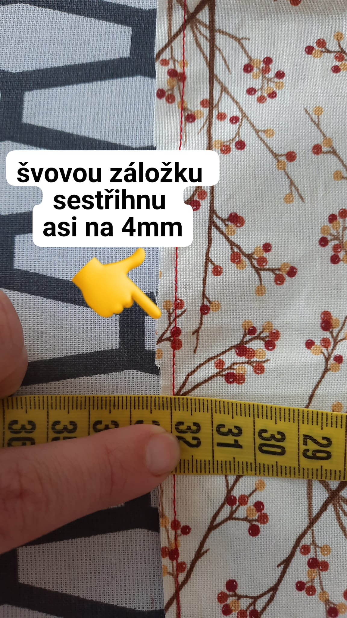 Z boku, kde mám na švovou záložku necháno 1.5 až 2 cm jsem tedy ušila šev za 0,75cm.