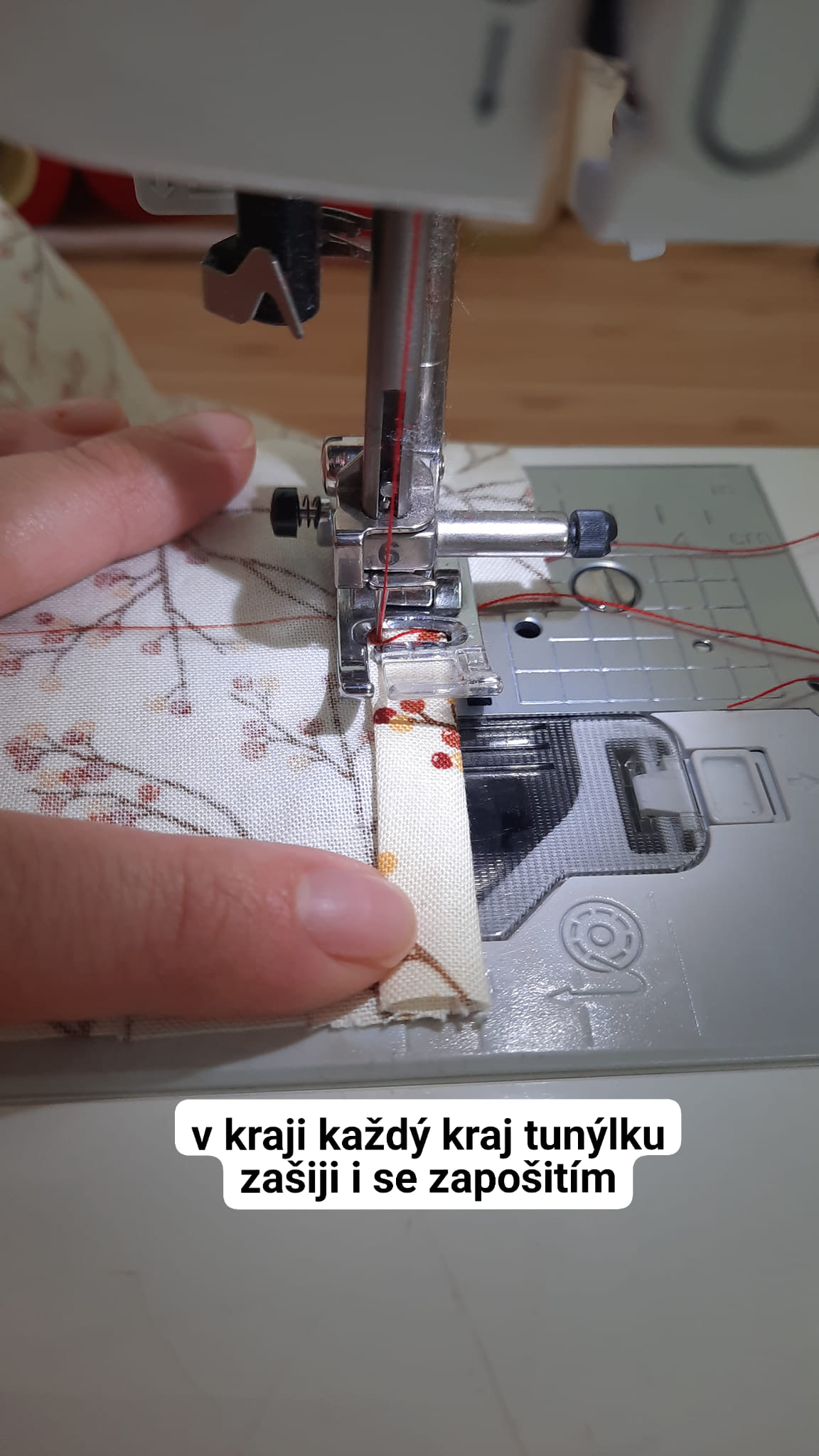 Z rubové strany povedu nové šití, které navazuje na tunýlek, je ve vzdálenosti cca 0,75 až 1 cm od ohnutého kraje.