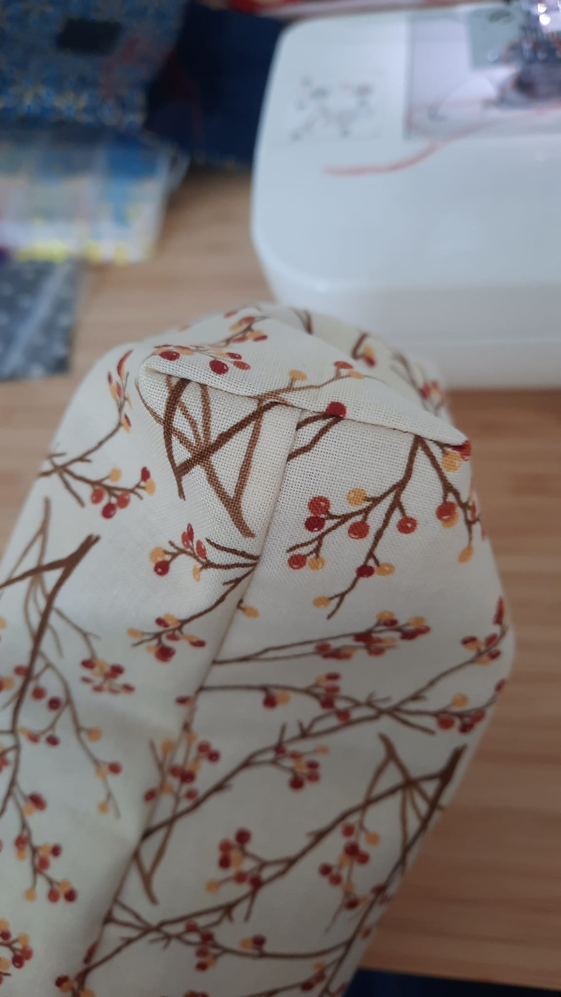 Sáček otočím do rubu a kraj úplně vymnu a vyžehlím do rovna.