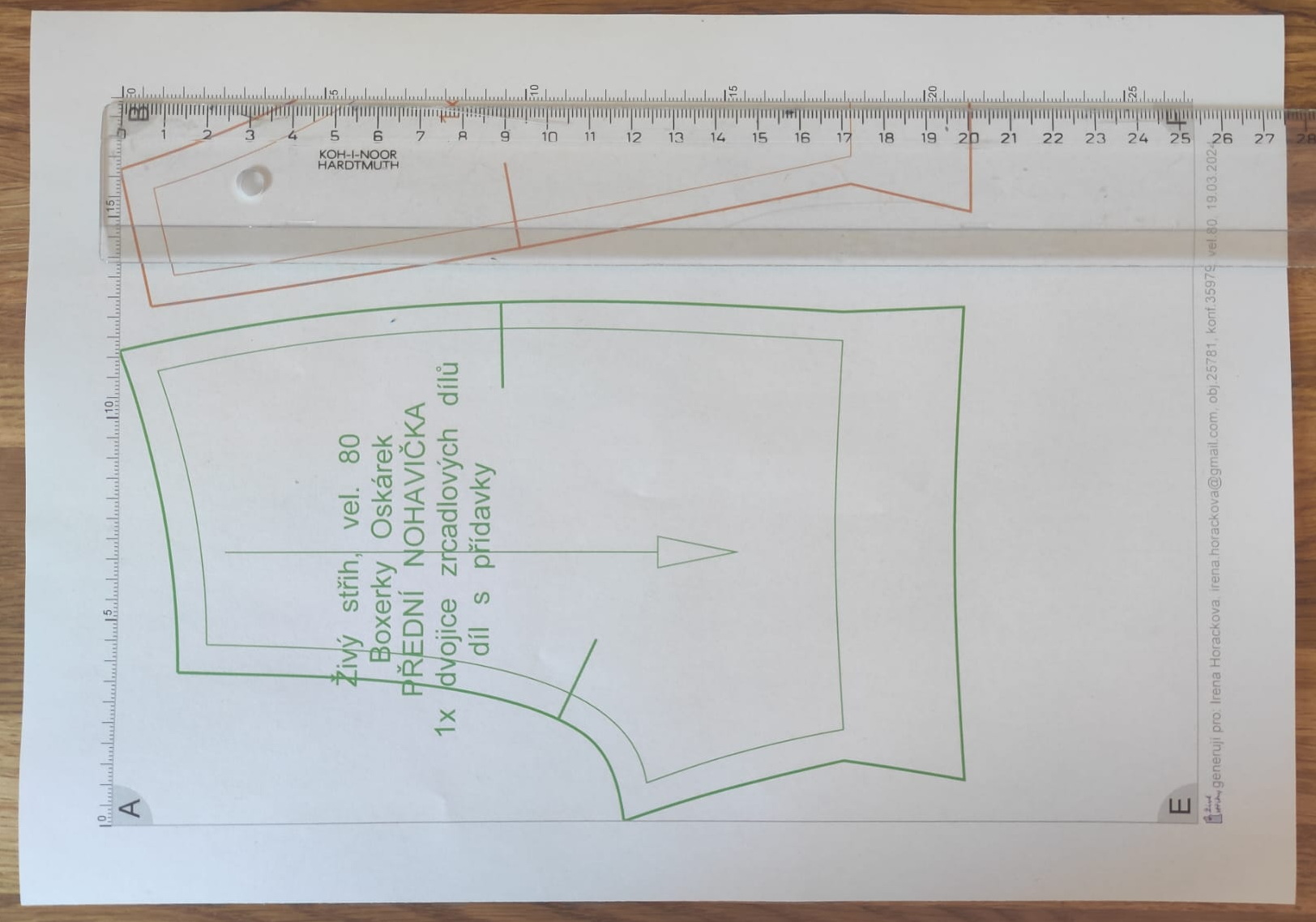 Pokud se nám stane, že po nastavení měřítka na 100% se nám stránka vytiskne takhle nebo podobně, stále máme řešení. Tady v tom případě se nám stránka vytiskla tak, že 20cm na papíře odpovídá 19cm ve skutečnosti. Tj. střih je menší, než má být.