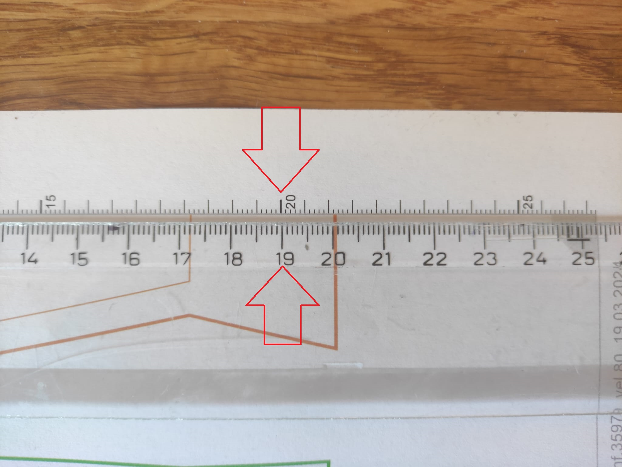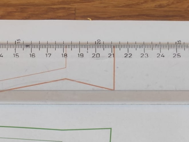 Spočítáme si o kolik ho musíme zvětšit, aby seděl. Nové měřítko= "centimetry na papíře" / "odpovídající cm ve skutečnosti" * 100 . V našem případě je nové měřítko = 20/19*100 = 105%. Pokud byl střih menší, než měl být, vyjde nám číslo větší než 100, pokud se střih vytisknul větší, vyjde nám číslo menší než 100.