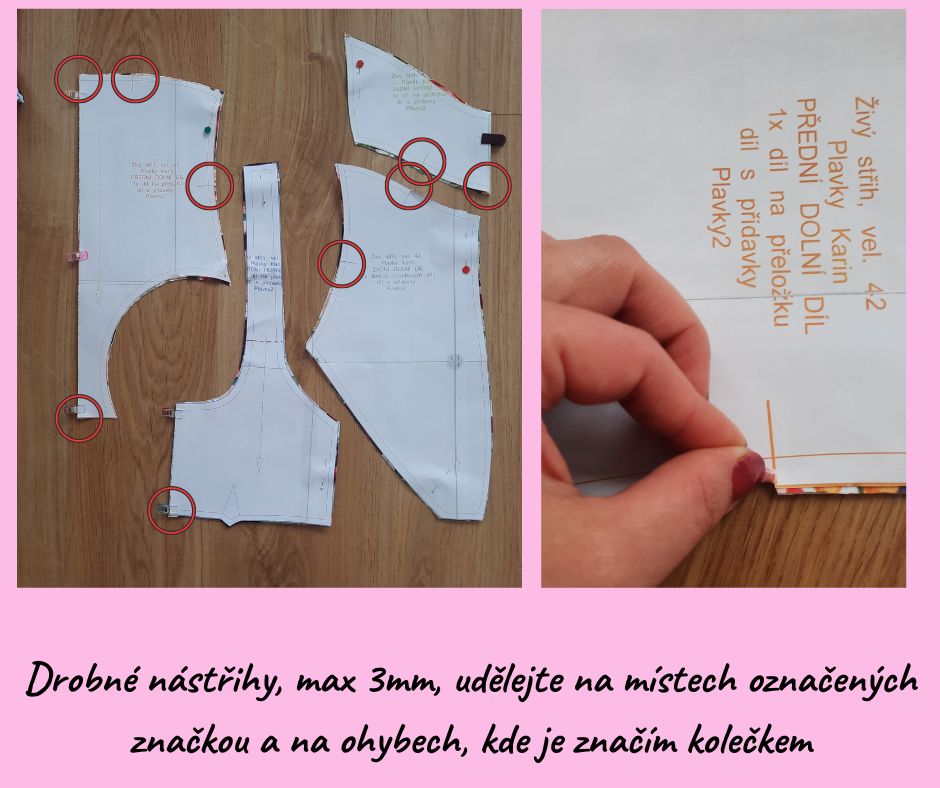 Drobné nástřihy, max 3mm, udělejte na místech označených značkou a na ohybech, kde je značím kolečkem