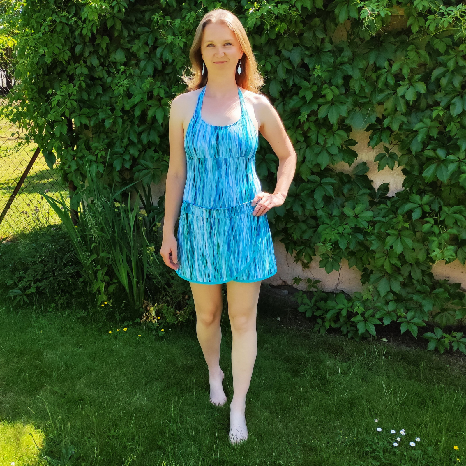 Zde je jednoduchý fotonávod na sukni k plavkám Karin. Střih je součástí střihu Lucie který obsahuje: legíny, kraťasy a sukni.