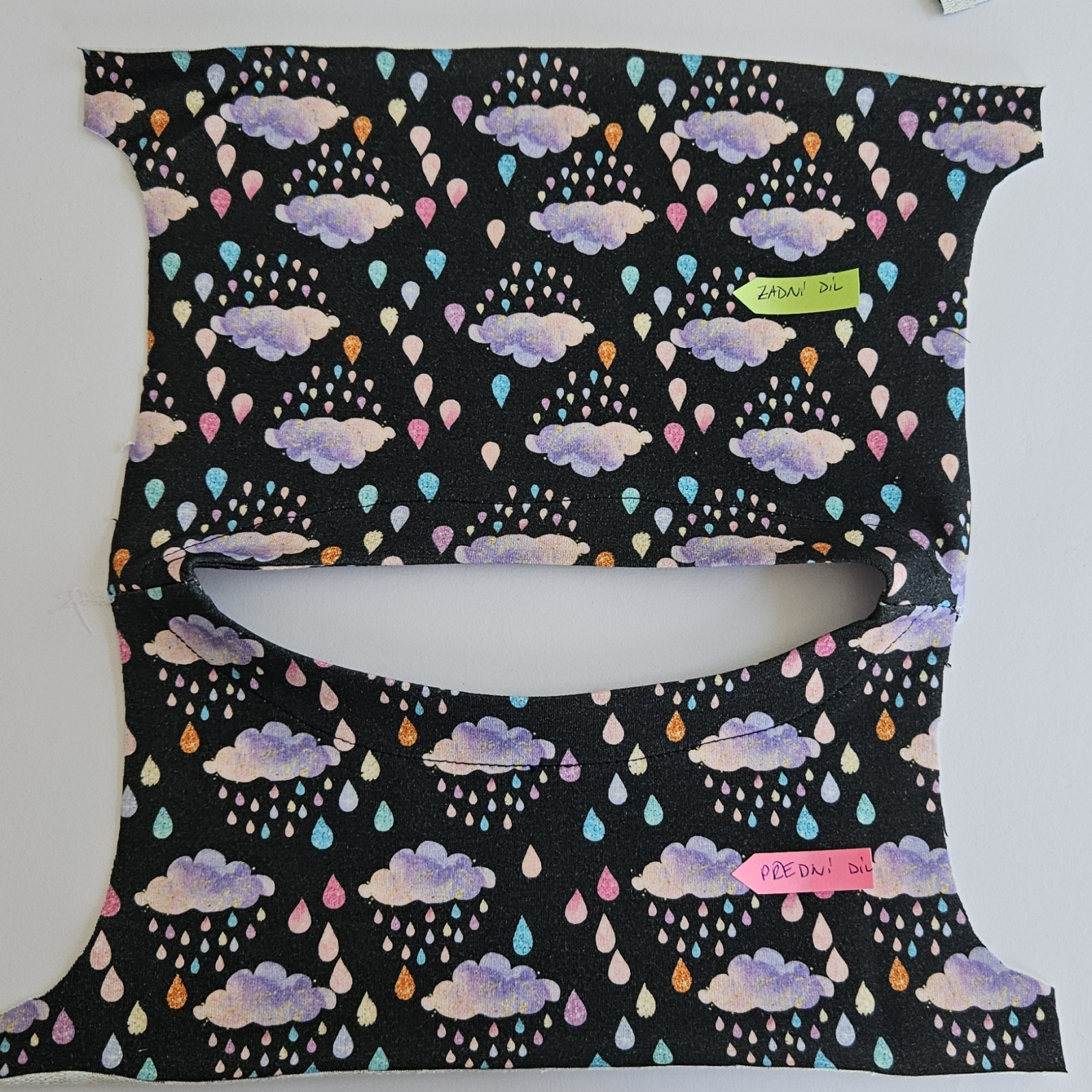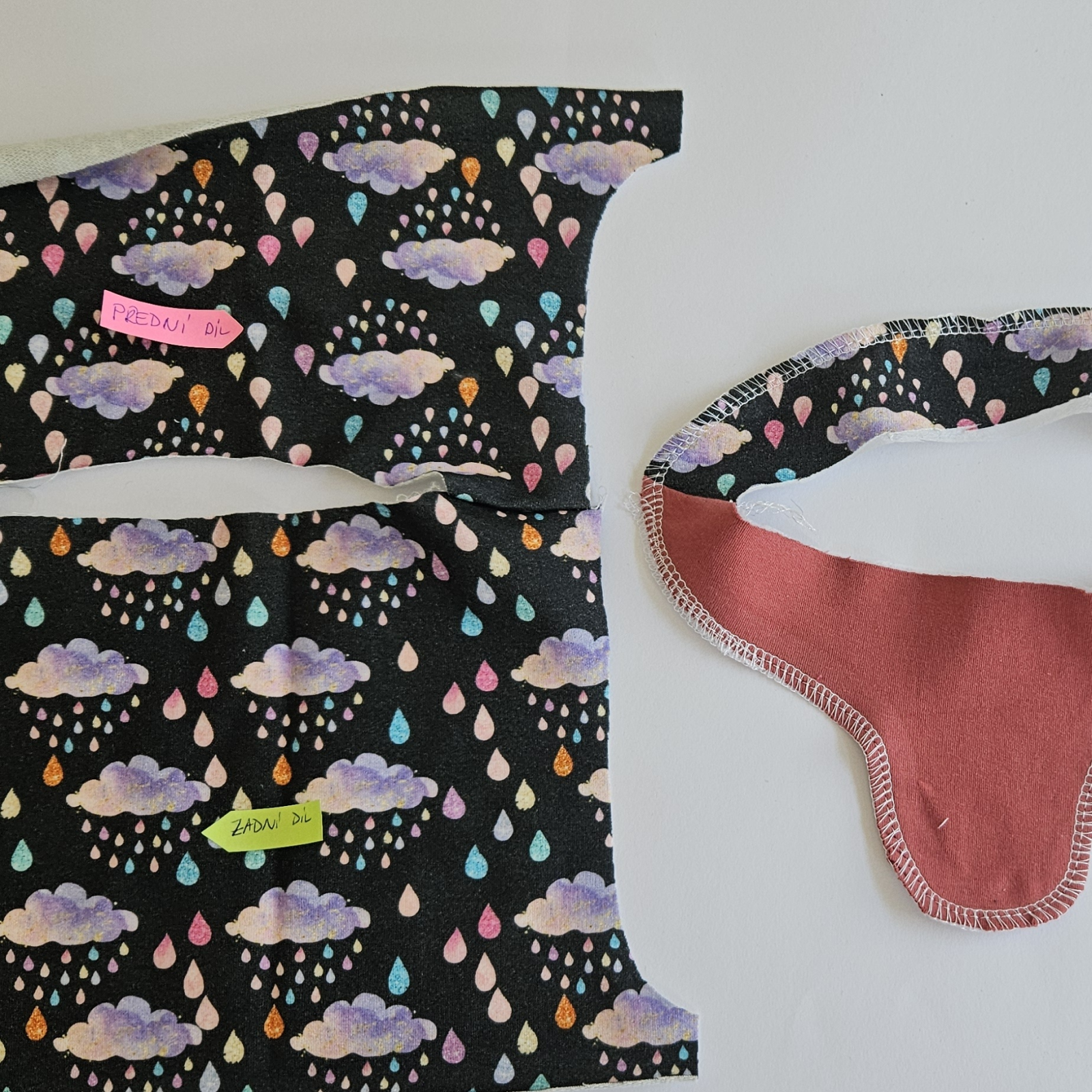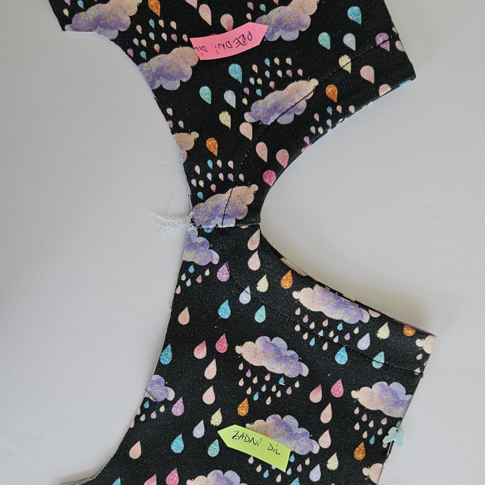 Díly podžehlím vlizelínem a pak sešiji ramenní švy na dílech i podsádce