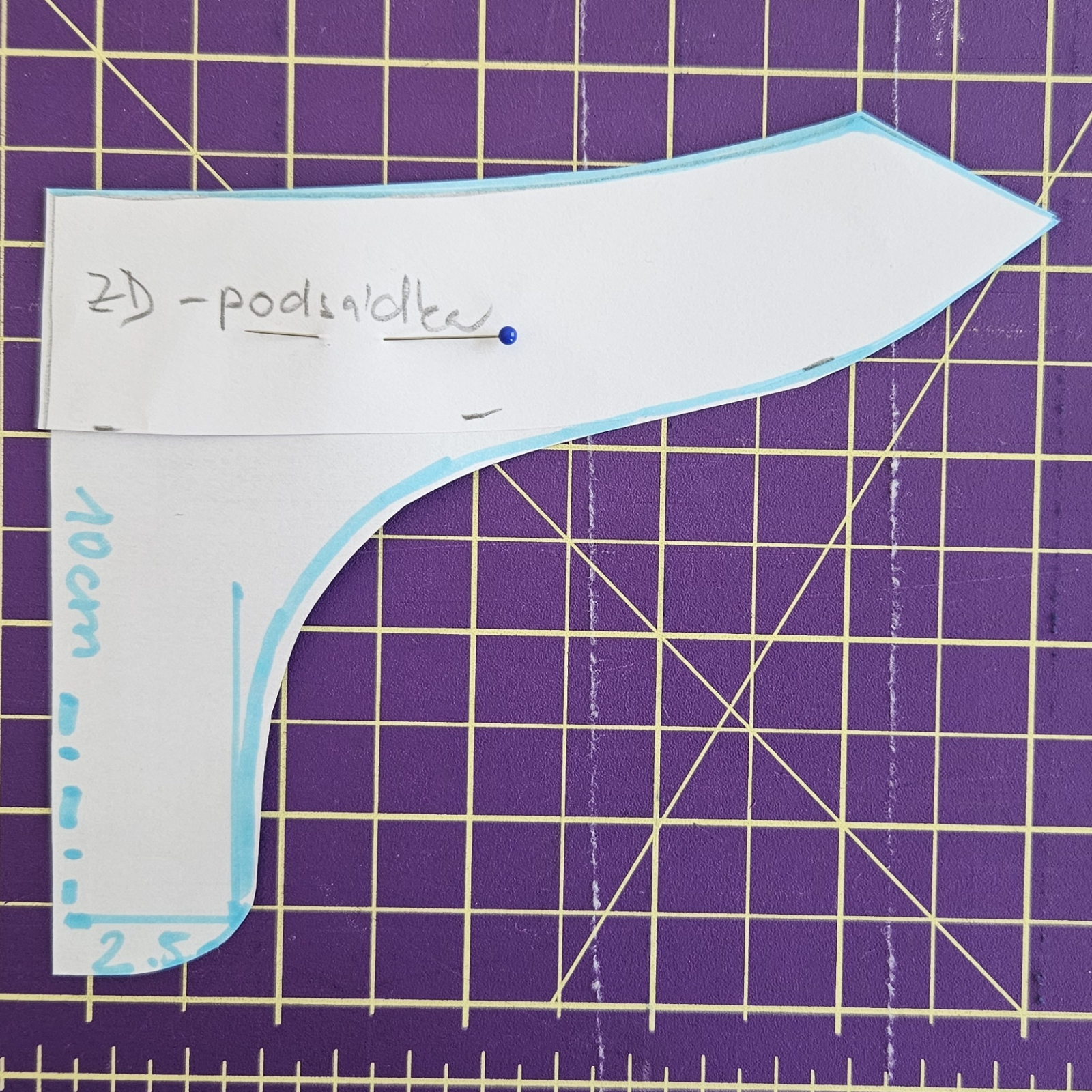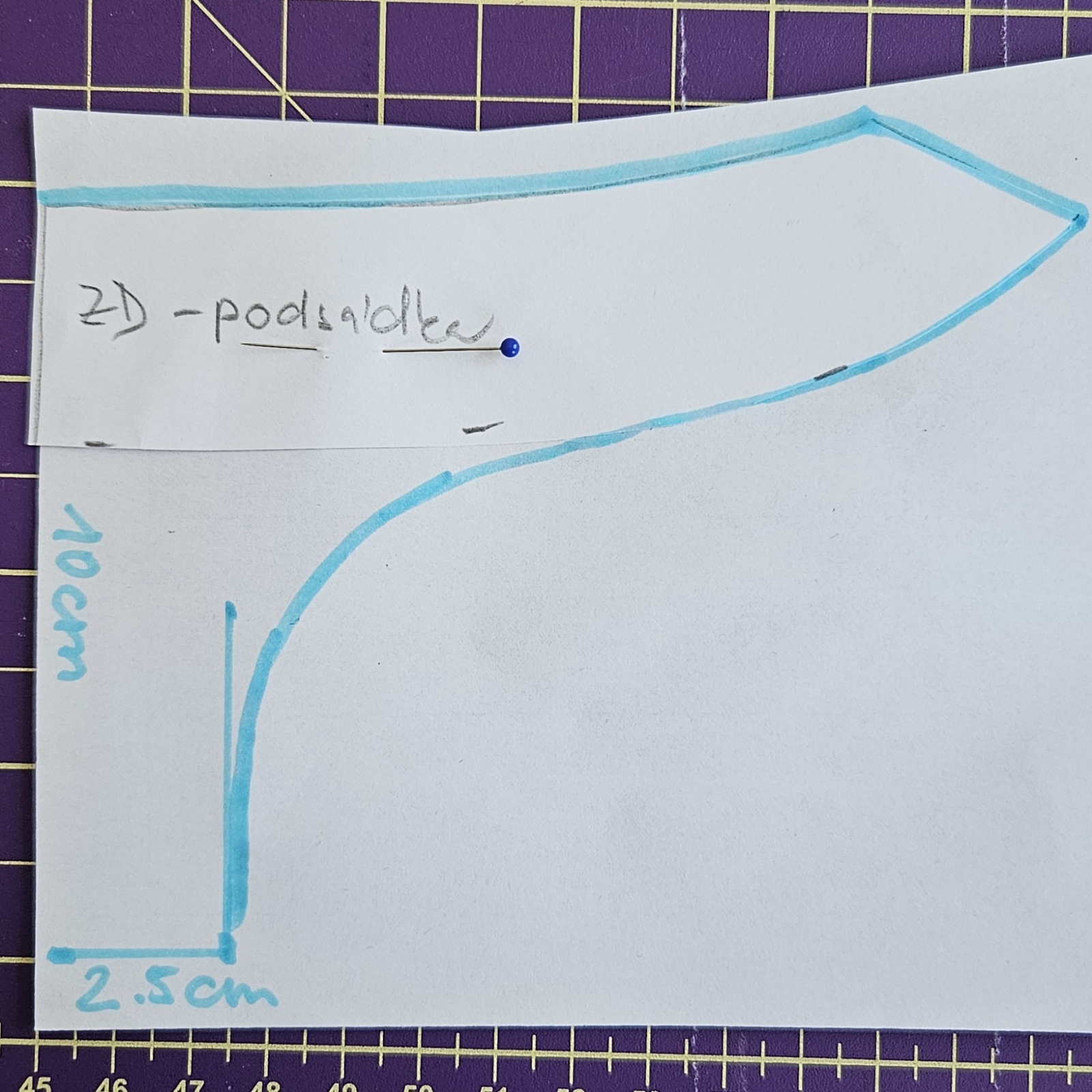 Podsádku si přiložím na papír a upravím ji dle obrázku.