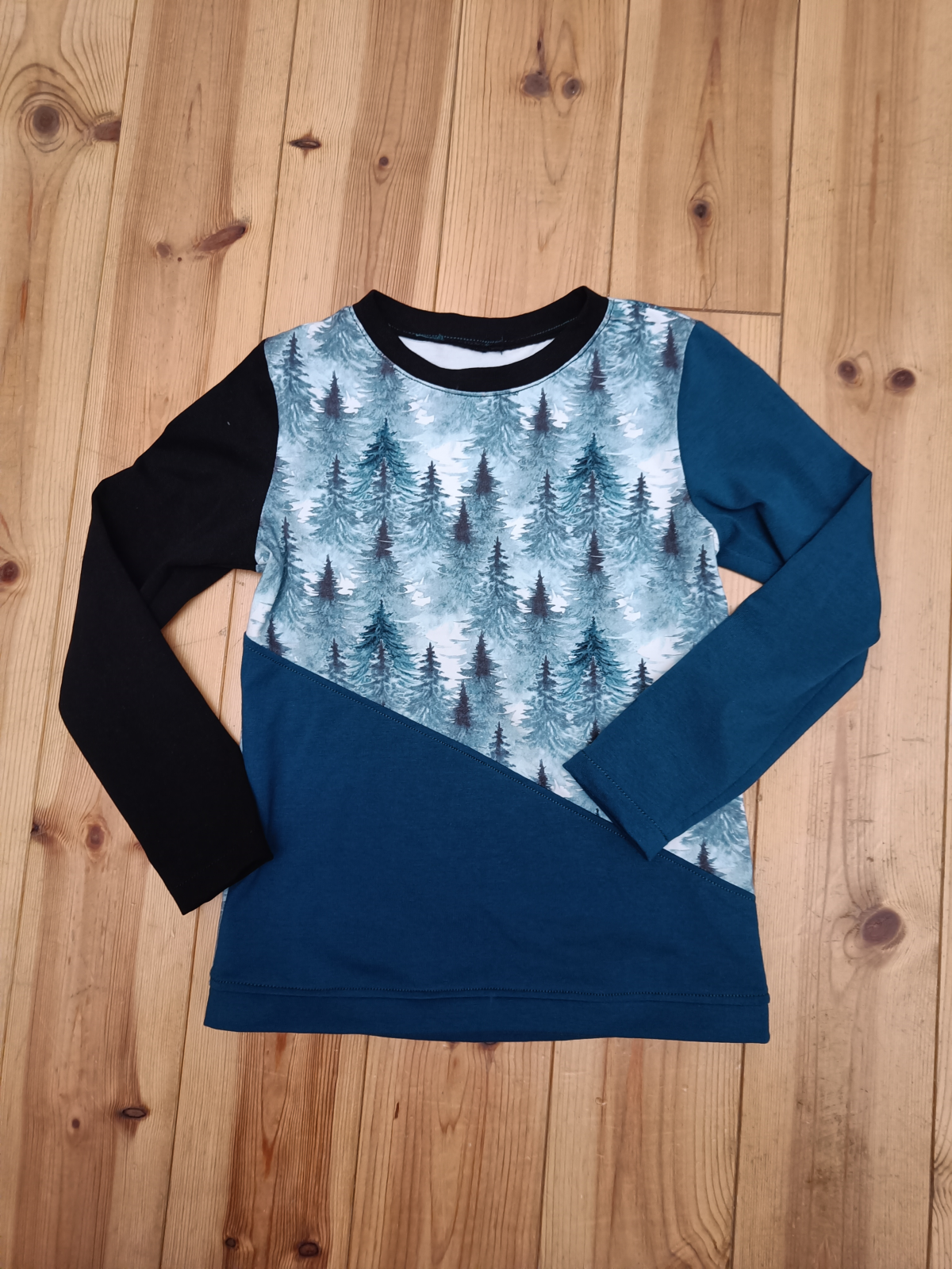 Materiál: Úplet stromečky: Látky Tinka, nepočesaná teplákovina (puntíky na modré): DePark