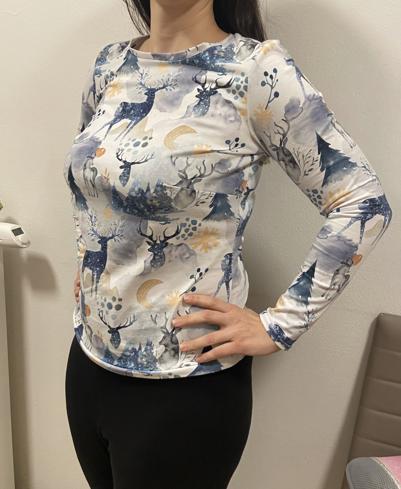 MM „Je to první kousek oblečení, který jsem kdy šila. Velmi mi pomohl video návod k dětské verzi Životrika. Měla jsem problém našít lem průkrčníku, takže jsem si ustřihla delší proužek, abych ho nemusela tak natahovat, a proto mi trochu víc vepředu odstává. Jinak tričko krásně sedí. Jsem velmi spokojená se záševky na prsa i projmutím v pase. Měřila jsem se a konfigurovala střih na míru. “