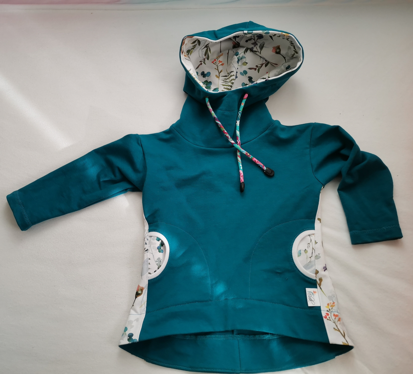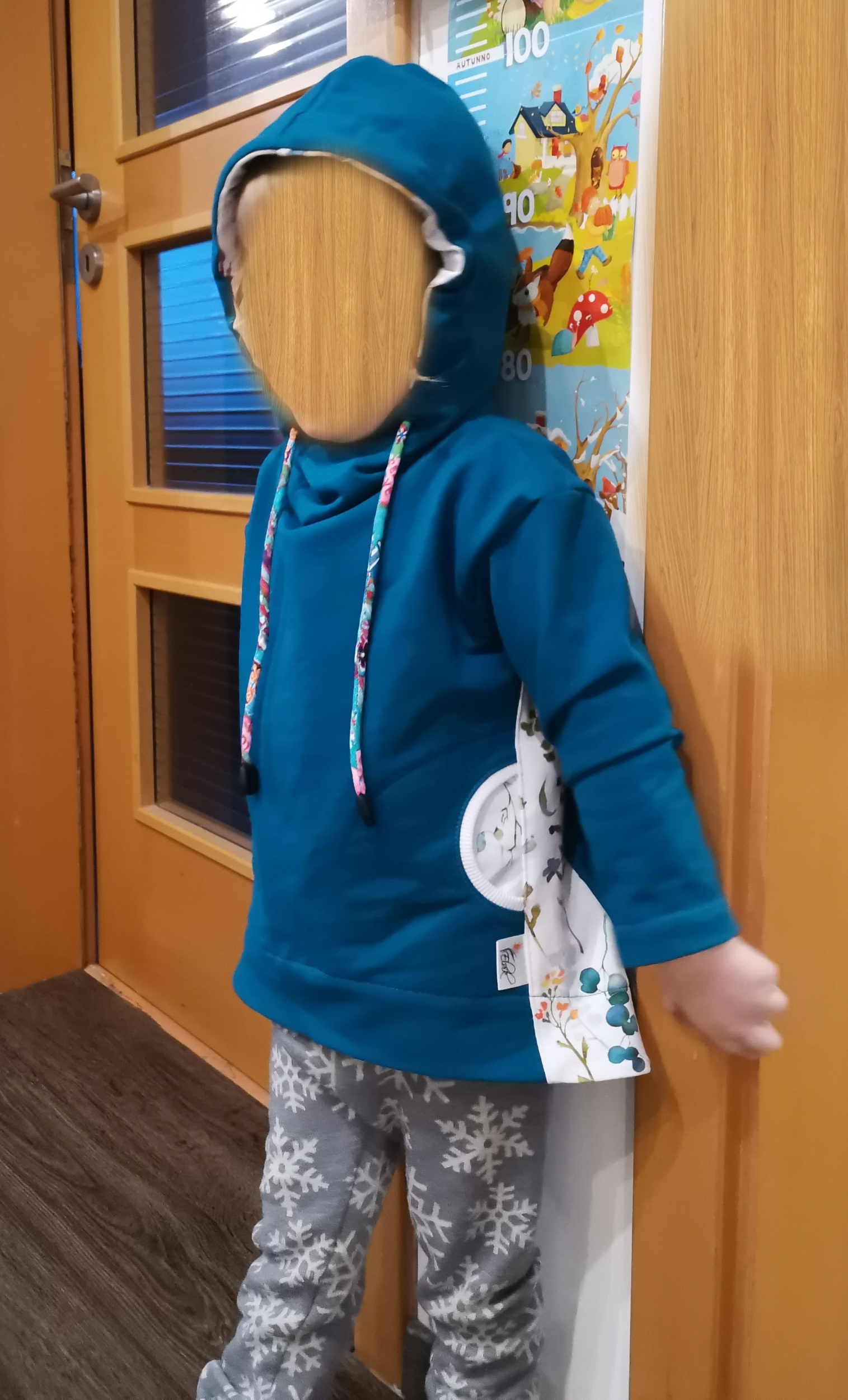 LB „Návod jak vždy precizně perfektní. Kapucka krásně kryje krk, což je na zimu super. Velikost sedí, je obecně volnější, ale to je pro děti určitě lepší. Já jsem udělala volnější o cca 1 cm i obvod rukávu. Dcerka byla z mikiny nadšená, mimo jiné i protože, máme teď obě mikiny stejné - i když dámskou verzi jsem šila pouze s límcem.“