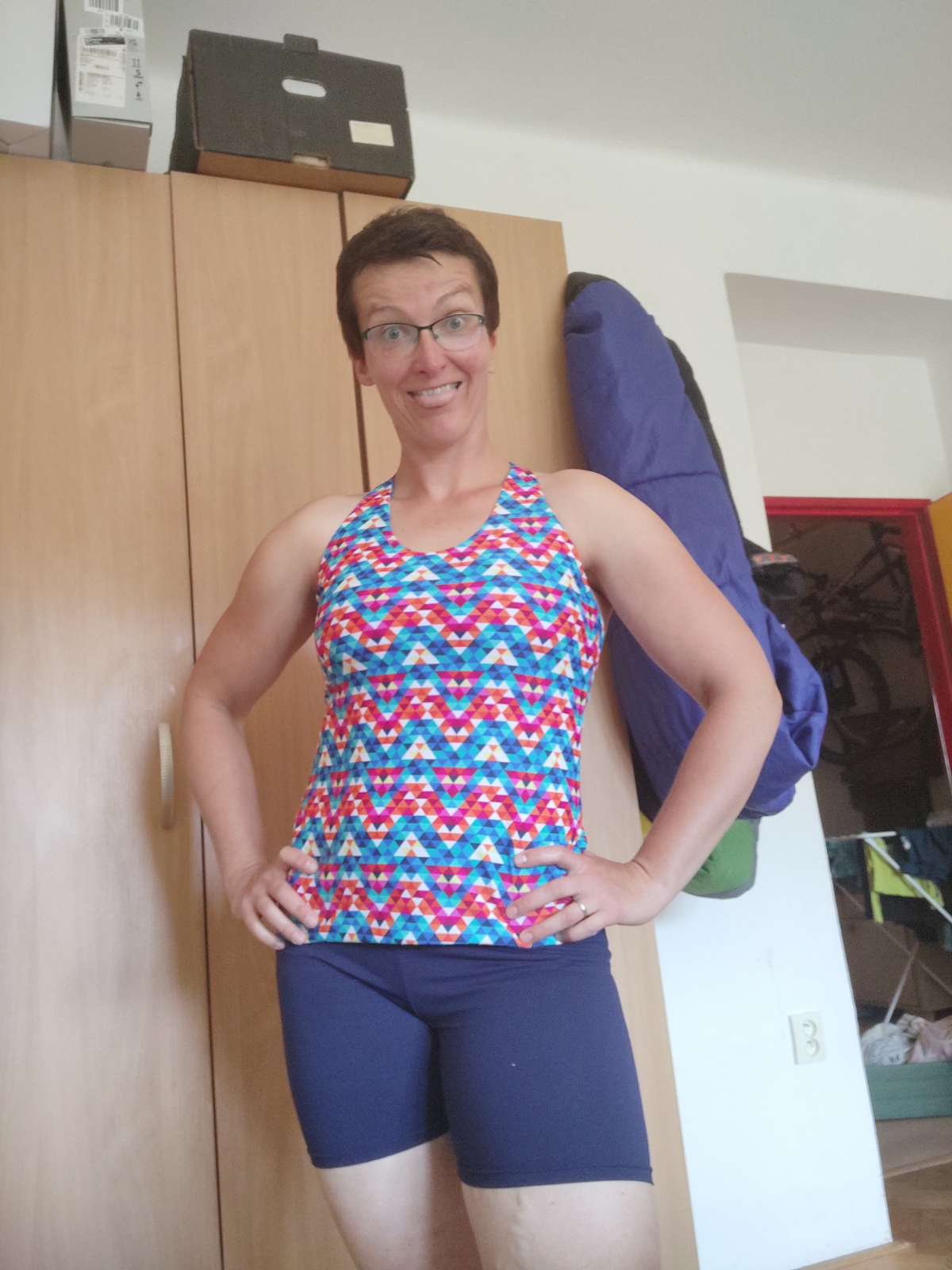 HH „Naprosté nadšení. Tentokrát jsem potrenovala a tílko vyztužila lastinem dle návodu. Ušila jsem ho dost na tělo, trochu jsem si zmenšila výstřih a teda boží. Kromě jógy a lezení v něm i běhám a skáču přes švihadlo. To jsem nečekala. Budou muset být další. Nějlepsi sportovní tílko, co jsem kdy měla.“