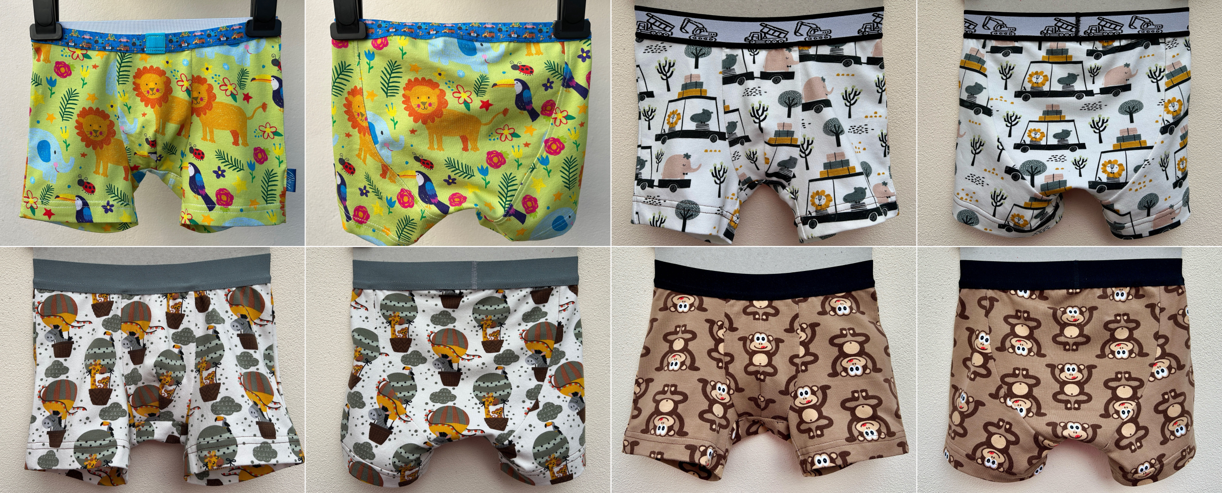 Materiál: Úplet 95% bavlna + 5% elastan (zbytkový, různí prodejci); guma www.gatatka-galanterie (2024) a www.moje-siti.cz (modrá s tiskem-2022)