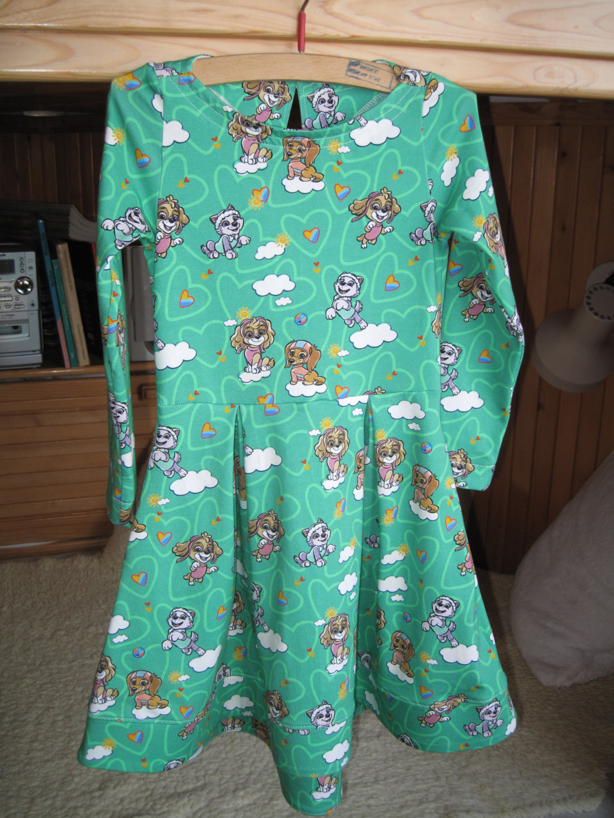 MN „Byla jsem se střihem velmi spokojená - jako se všemi ostatními. Šaty daly stejnou práci jako pro dospělého, možná i více, protože kvůli velikosti hlavičky jsem průkrčník zadního dílu musela šít s rozparkem. Šaty se však povedly a milovnice "tlapkovky" je s vánočním dárkem spokojená. “