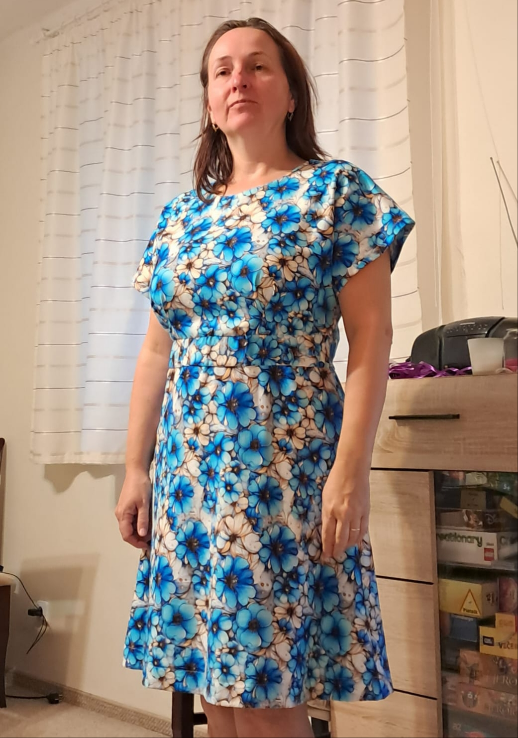 MB „Bylo to mé první šití z úpletu a na novém stroji. Střih byl jednoduchý a dobře se s ním pracovalo. Šaty mají krásnou fazónu, budu šít ještě s pouzdrovou sukní. Velmi mi pomohl videonávod. “