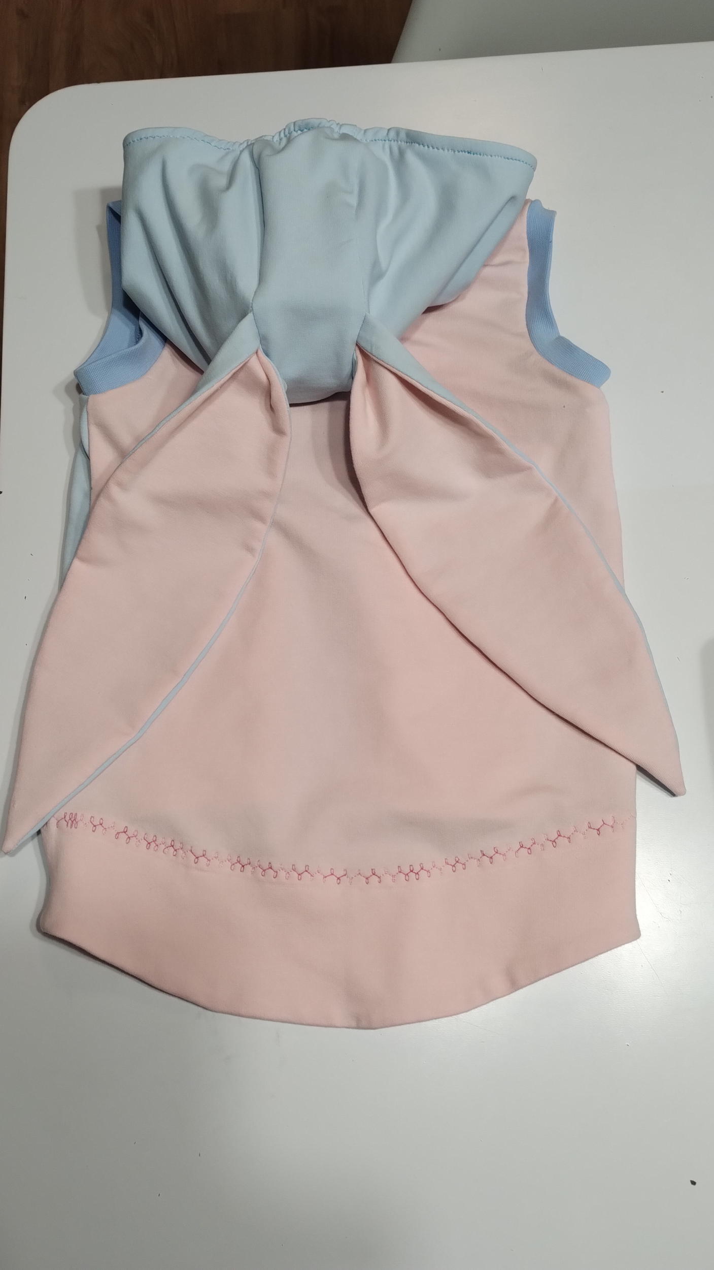 Materiál: Šito z nepočesané teplákoviny s elastanem, byla za pár kaček jako 2. jakost. Na naučení pro mě, jako začátečníka, velmi výhodné 👍