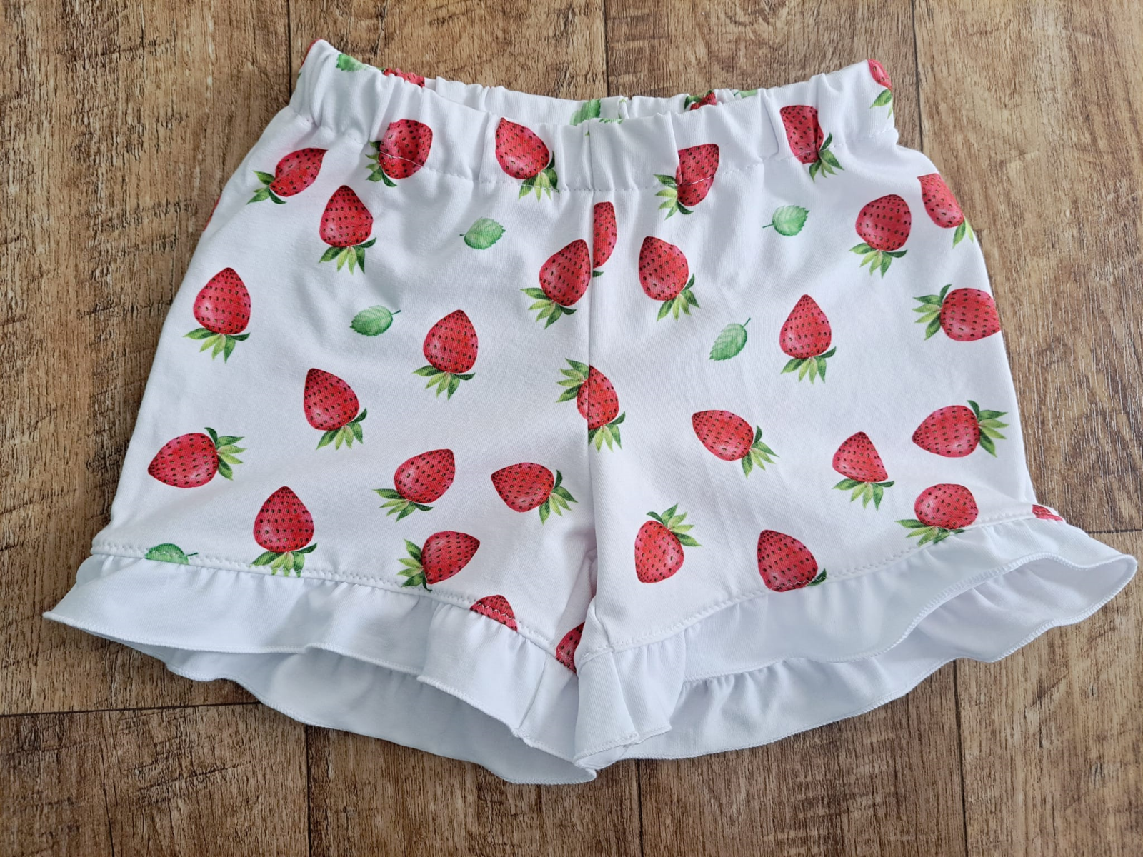 JM „Zatím jsem legínky zkusila jen ze zbytku látky a vytvořila kraťasy. Lem je můj vlastní nápad :) Šila jsem 122, dceři jsou volnější, ale to vůbec nevadí, počítala jsem s tím. Protože podle konfigurátoru má 116.“