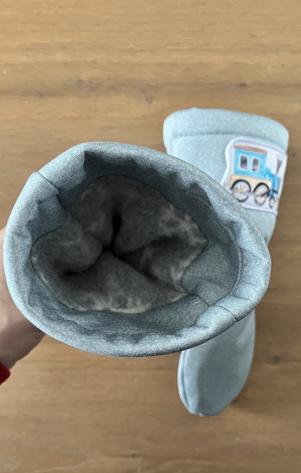 „Střih je super. Šia jsem ho opět po roce, prolítla fotonávod a ušila. Překvapilo mě, jak to šlo rychle a hladce. Syn je nadšený, v rukavicích postavil koleje, jezdil s vláčkama a chtěl v nich i svačit. Jsem zvědavá, jak bude fungovat podšívka s teplakoviny, dala jsem chloupek na dotykovou stranu, zatím je to moc příjemné...“
