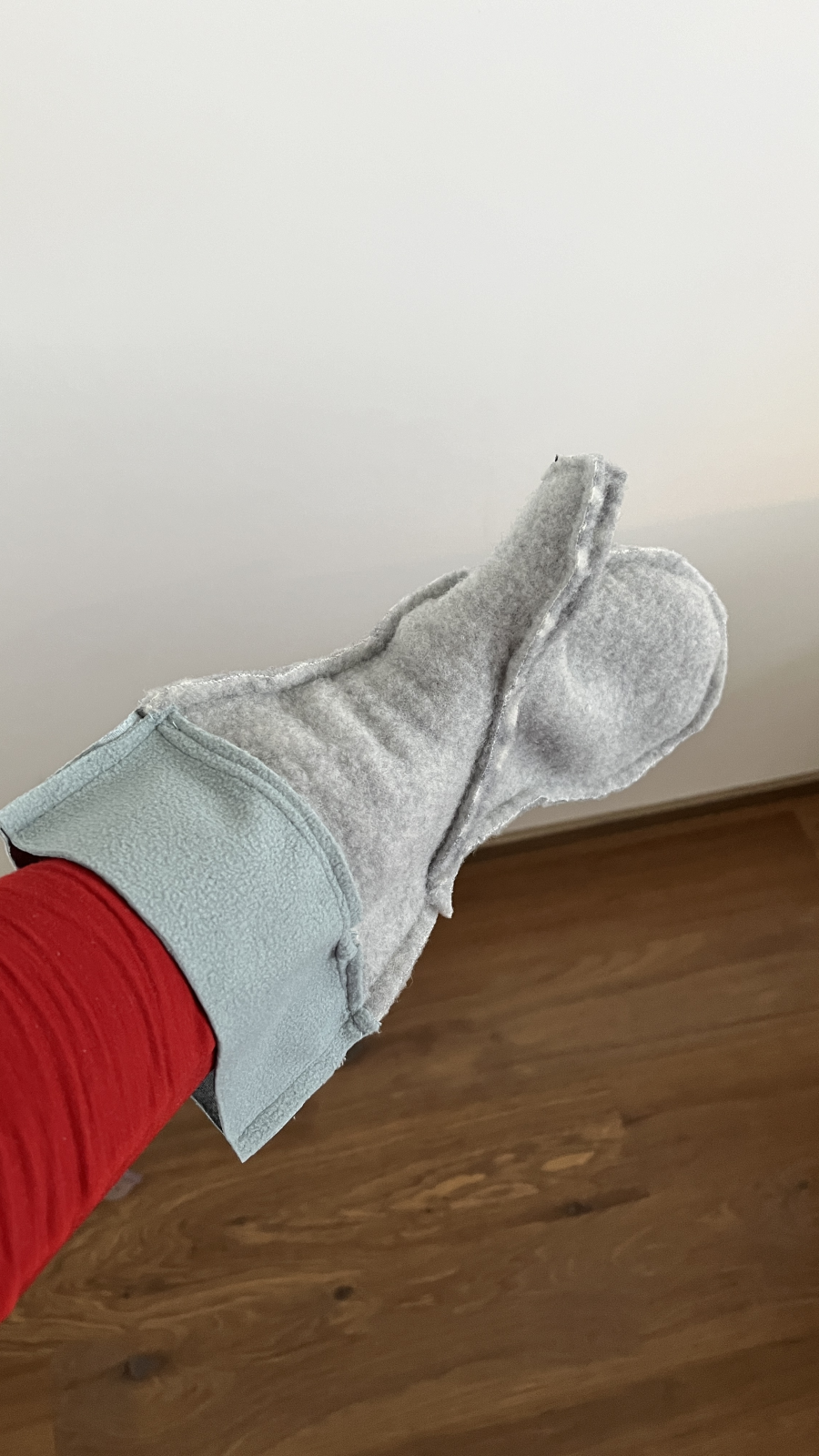 „Rukavice jsem si ušila ze zbytků po kabátu jako zkušební vzorek pro sebe, proto ta větší velikost. Střih je super! Když pominu množství dílů k nastřihání, tak jsou rukavice relativně rychle a snadno ušité, podle videonávodu to jde jak po másle. Díky!“