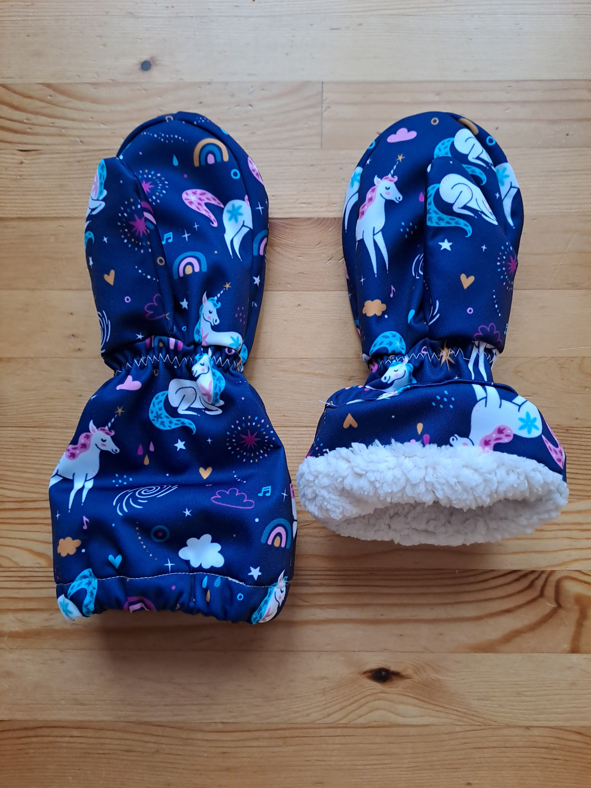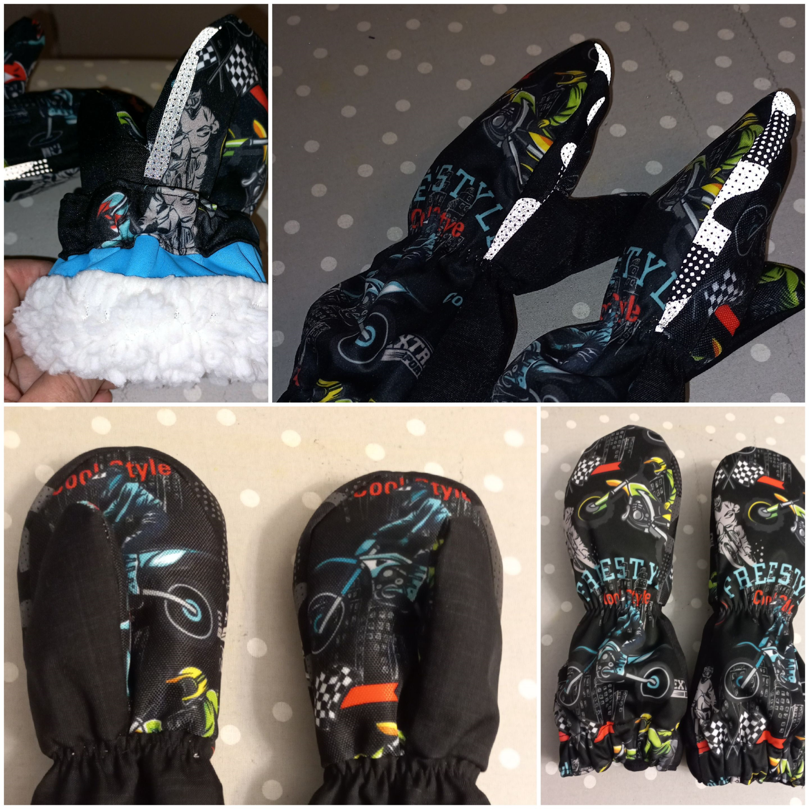 „Šilo se mi snadno a lehce, syn je z rukavic nadšený - na “práci” na celý den do lesní školky super 👌 horní gumičku jsem navlíkla a zavázala až dle bundy, od té doby už jsou v provozu a špinavé… 😉“