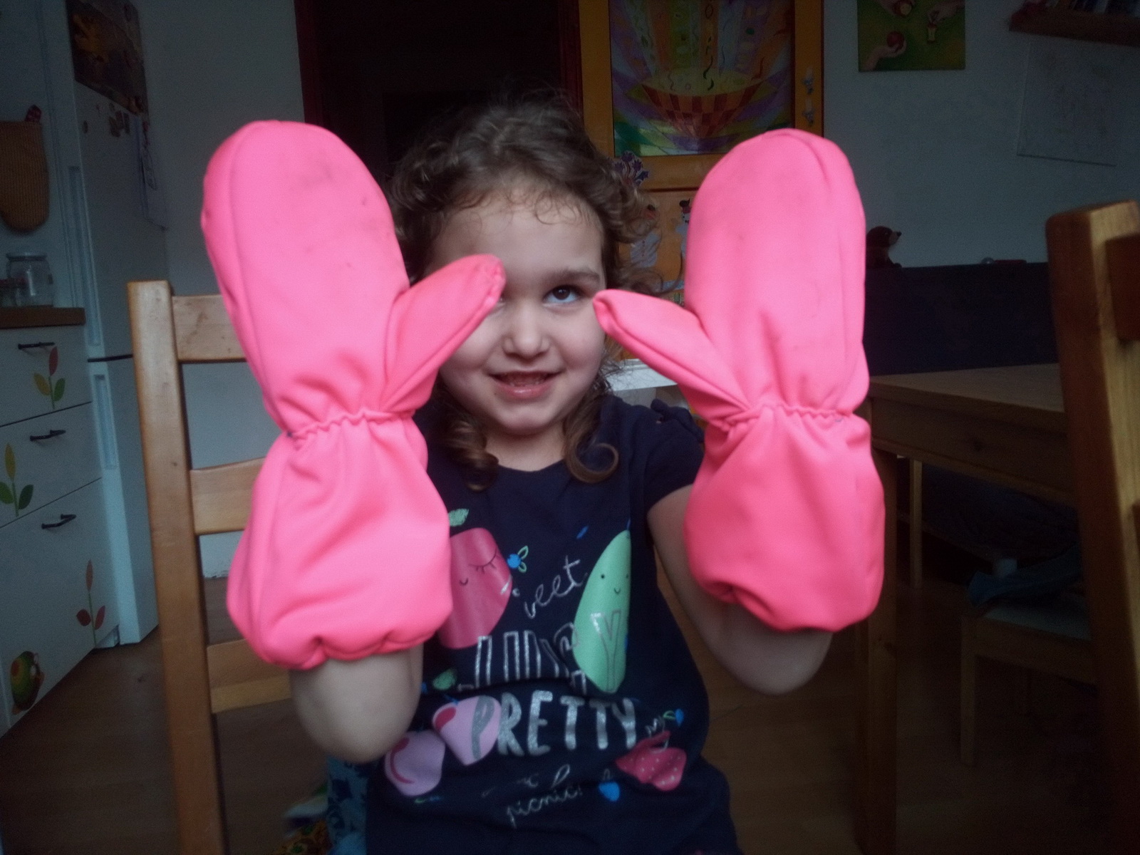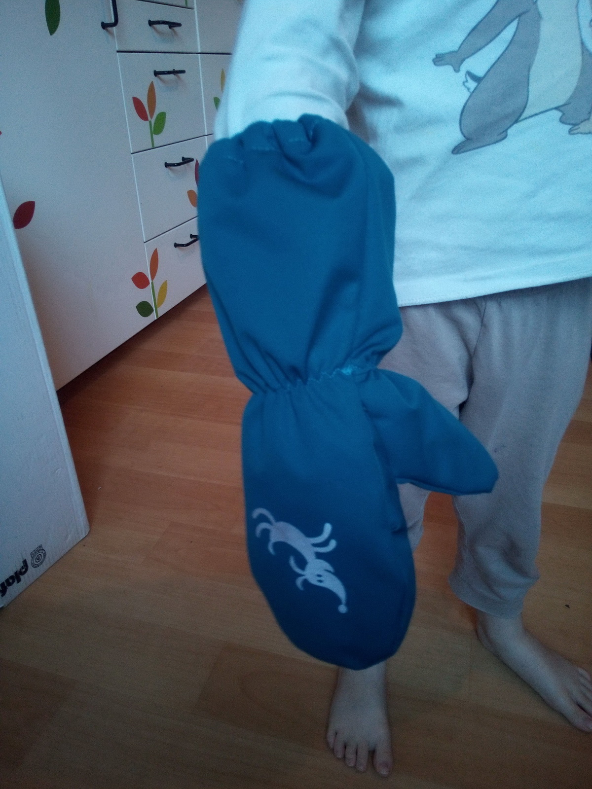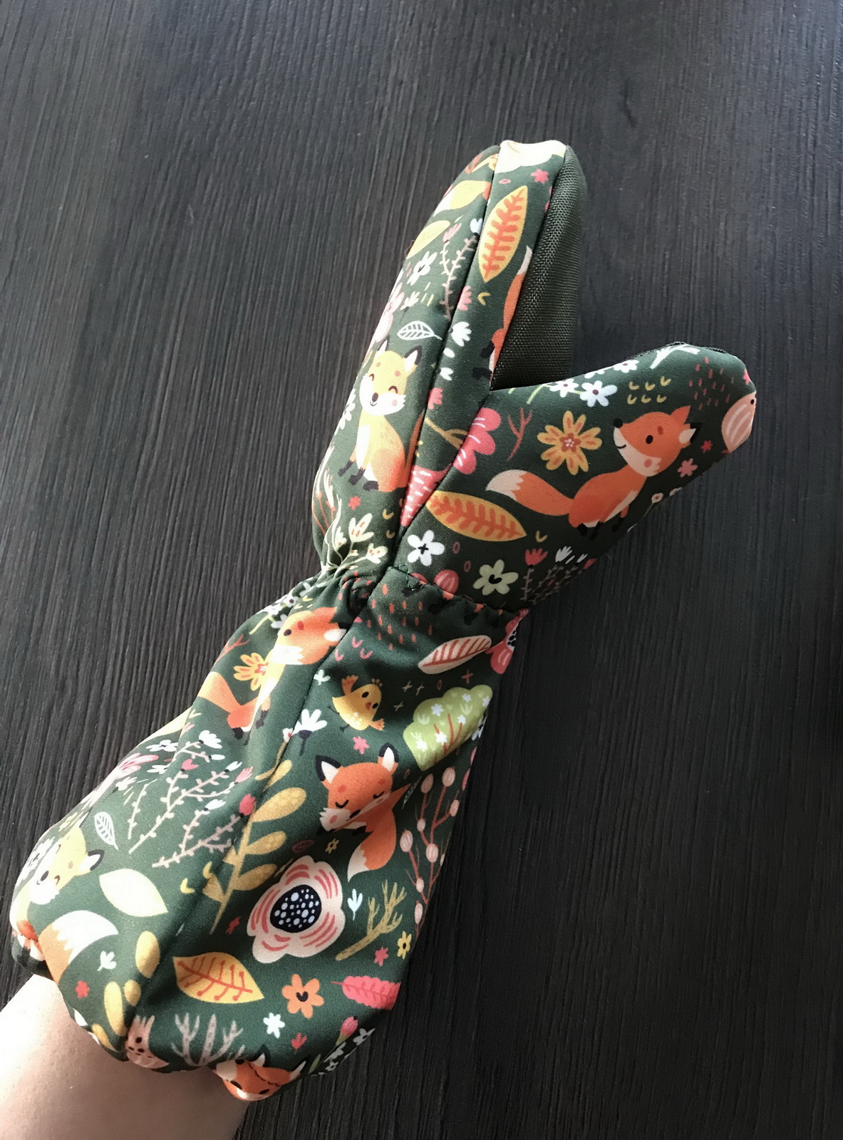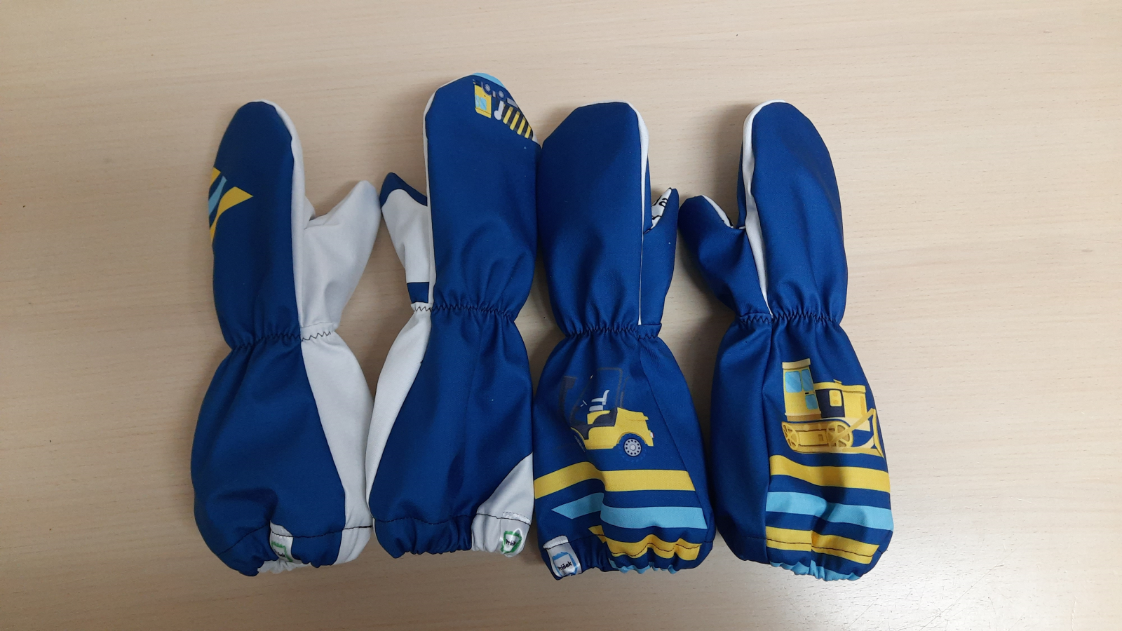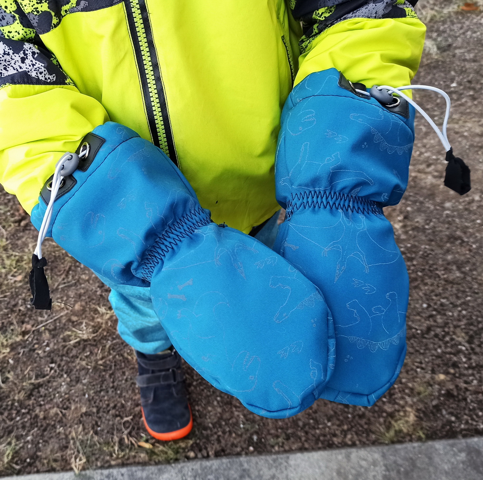 „Rukavice jsou velmi propracované a dobře dětem sedí. Dlouhý a široký spodek rukavice jde snadno natáhnout přes bundu až k lokti a dobře drží. Pokud se stříhá přesně a šije podle videonávodu, není co zkazit, ale je to piplačka :-D“
