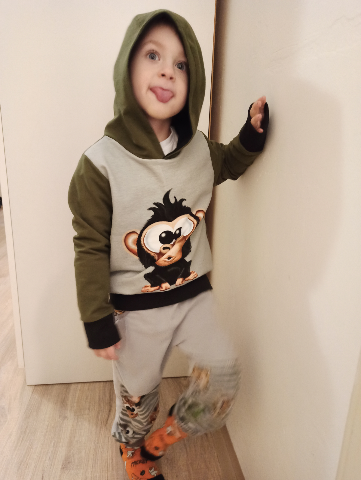 „Mikina je super, jen jsem pridala klokani kapsu. Konecne neco, co neni pidi a velikostne nam sedi.“