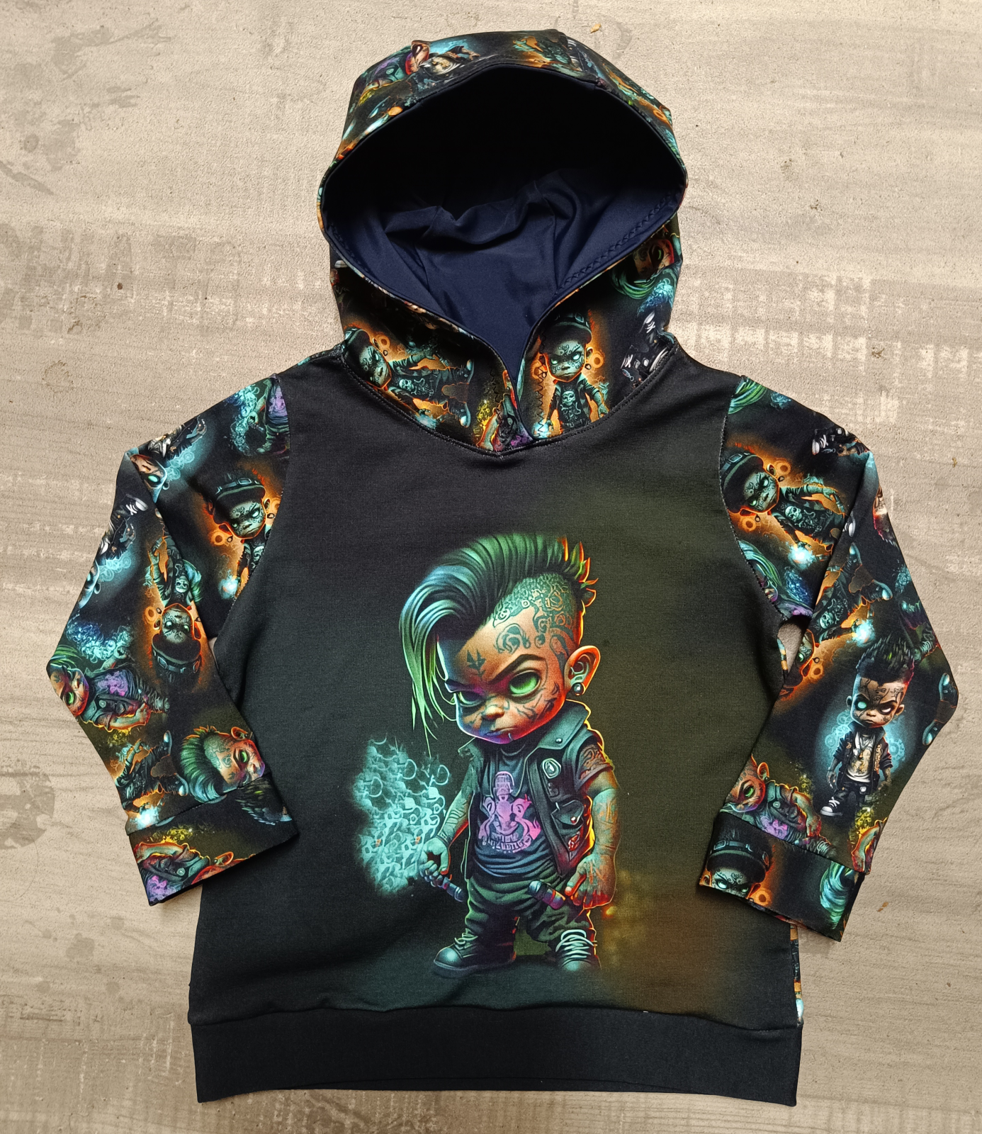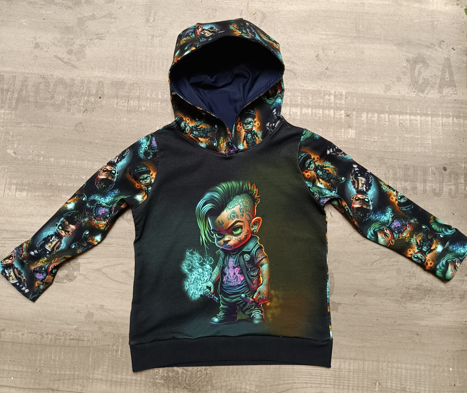 Základní basic střih na mikinu, vhodný pro kluky i holky. Možnost nastavení na míru dítěte.