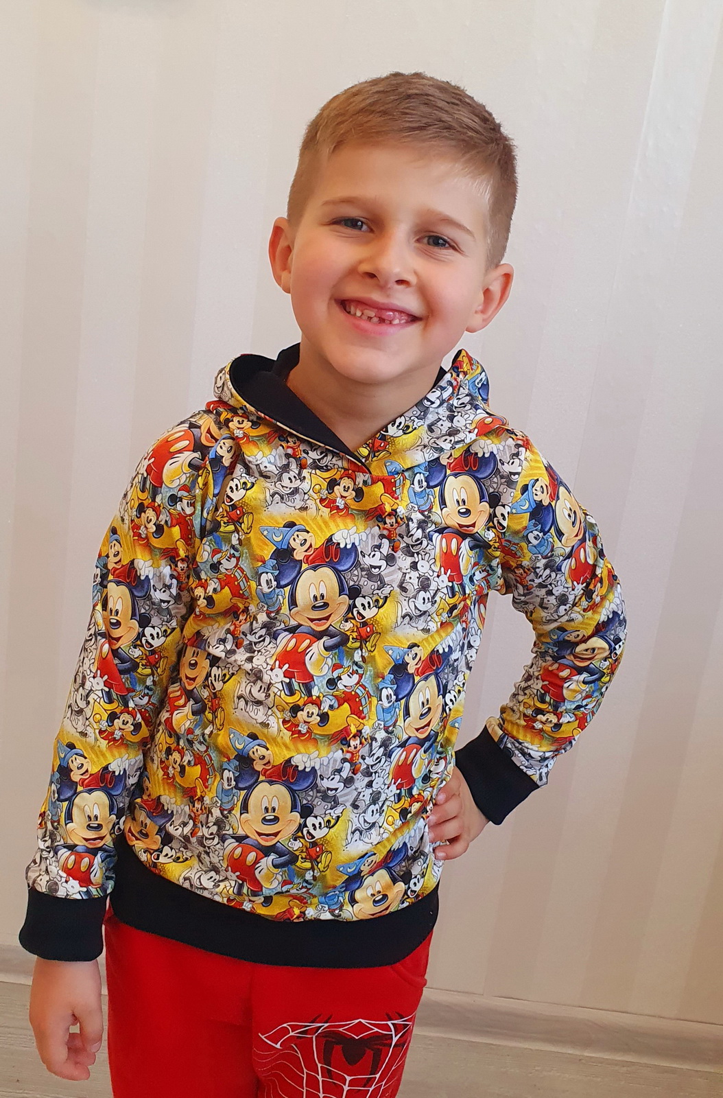 Základní basic střih na mikinu, vhodný pro kluky i holky. Možnost nastavení na míru dítěte.