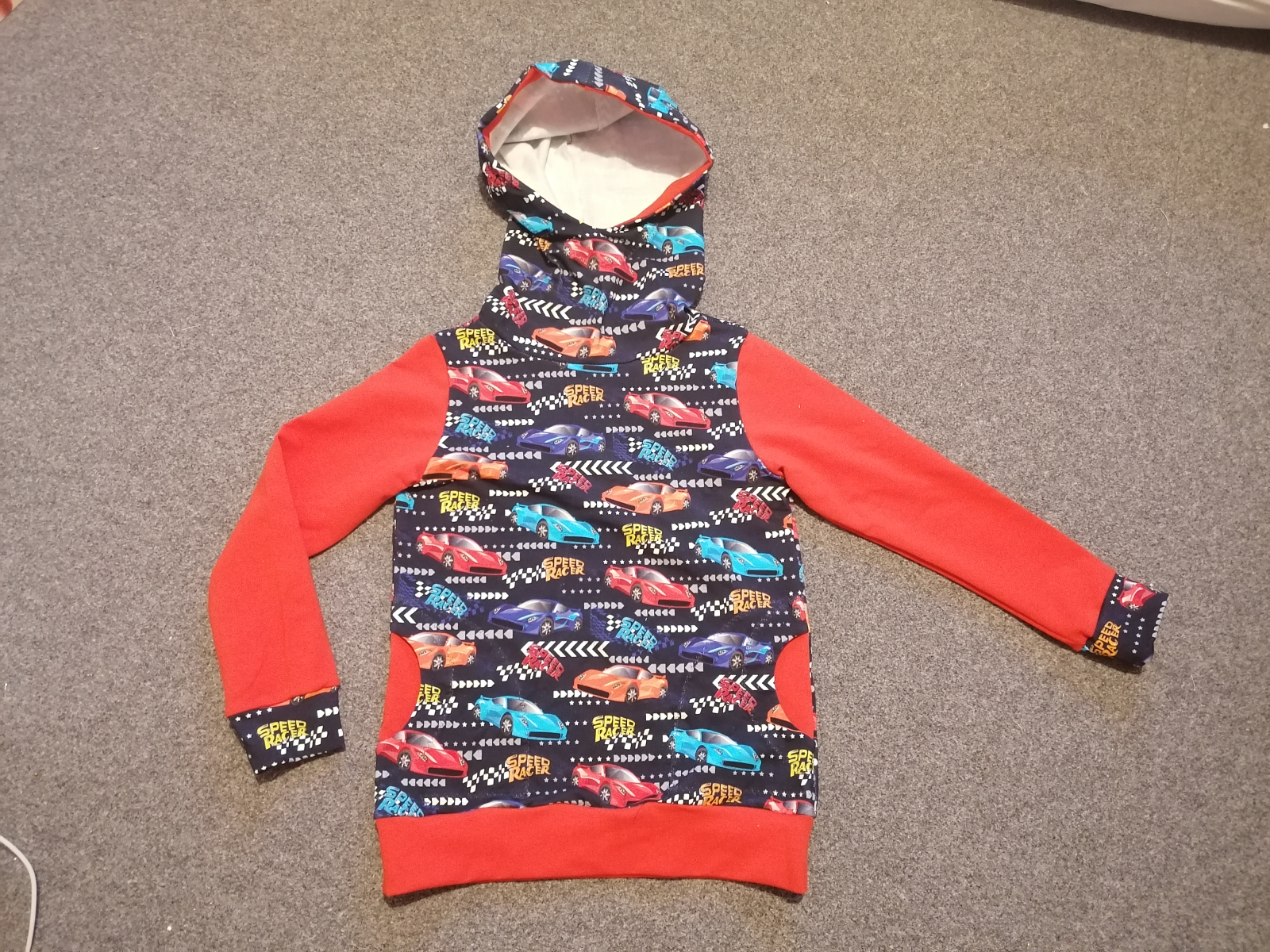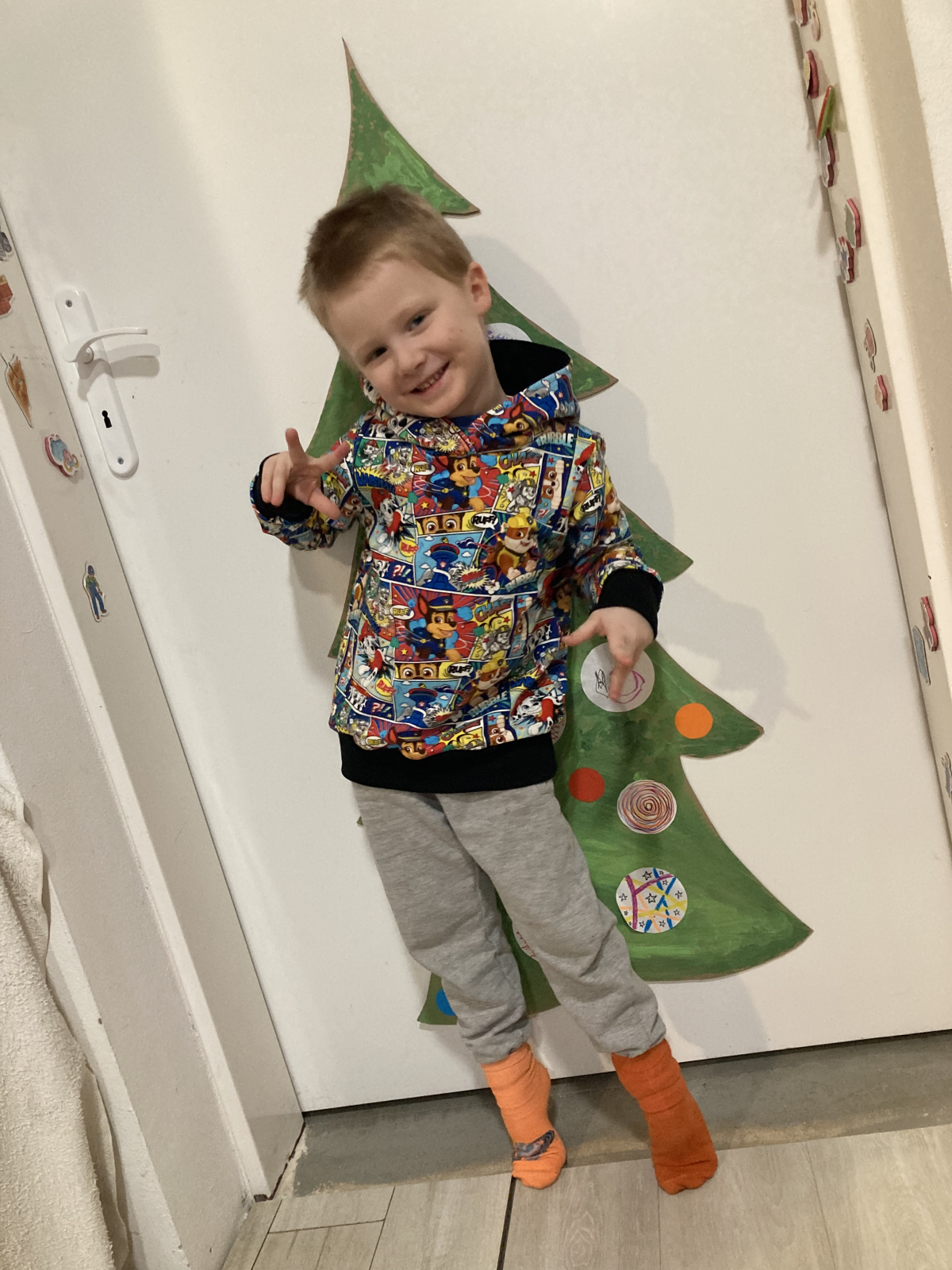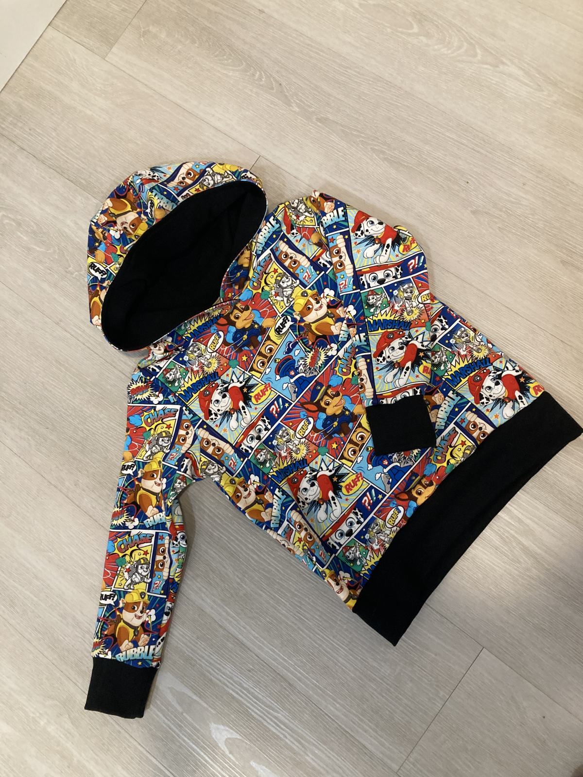 „Už čtvrtá mikina dle tohoto střihu, na přání bez kapuce, protože v kapuce pod zimní bundou "zavazí". Šilo se opět úžasně.“