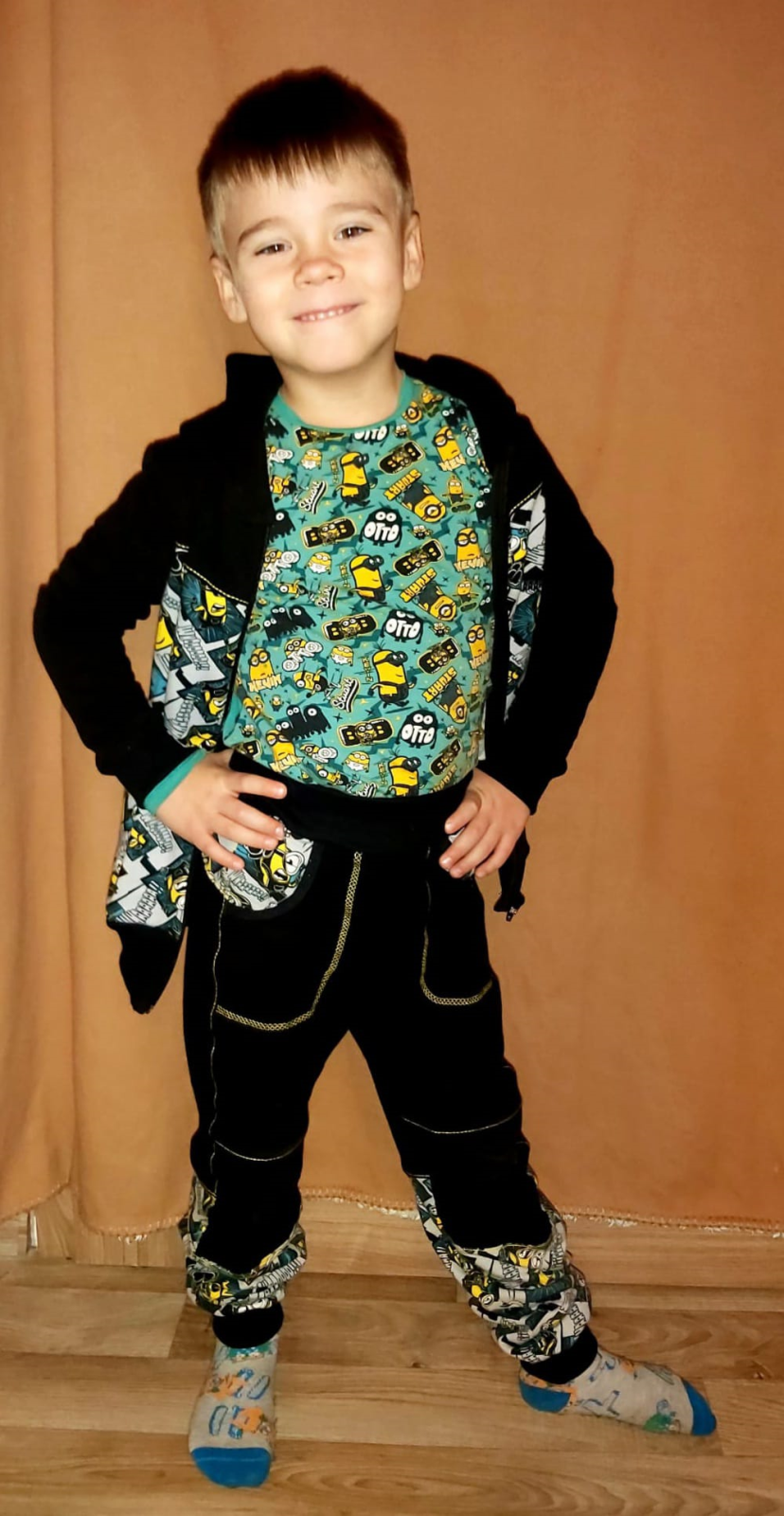 „Opět skvělý střih i návod. Ještě žádnou z mikin co jsem kdy šila jsem neušila tak rychle jako podle Vašeho návodu! Upravila jsem si jen přední díl tak, aby se nemusel řasit do sedla a bylo možné jej použít jako verzi pro kluky. Mikina krásně sedí!! Tepláky na fotce jsou podle Vašeho střihu "Kamil" a tričko podle střihu "Životriko" Mockrát děkuji za vaše střihy, které se dají upravovat na míru a obsahují přídavky na švy a je možné tisknout každou velikost samostatně !!!!“